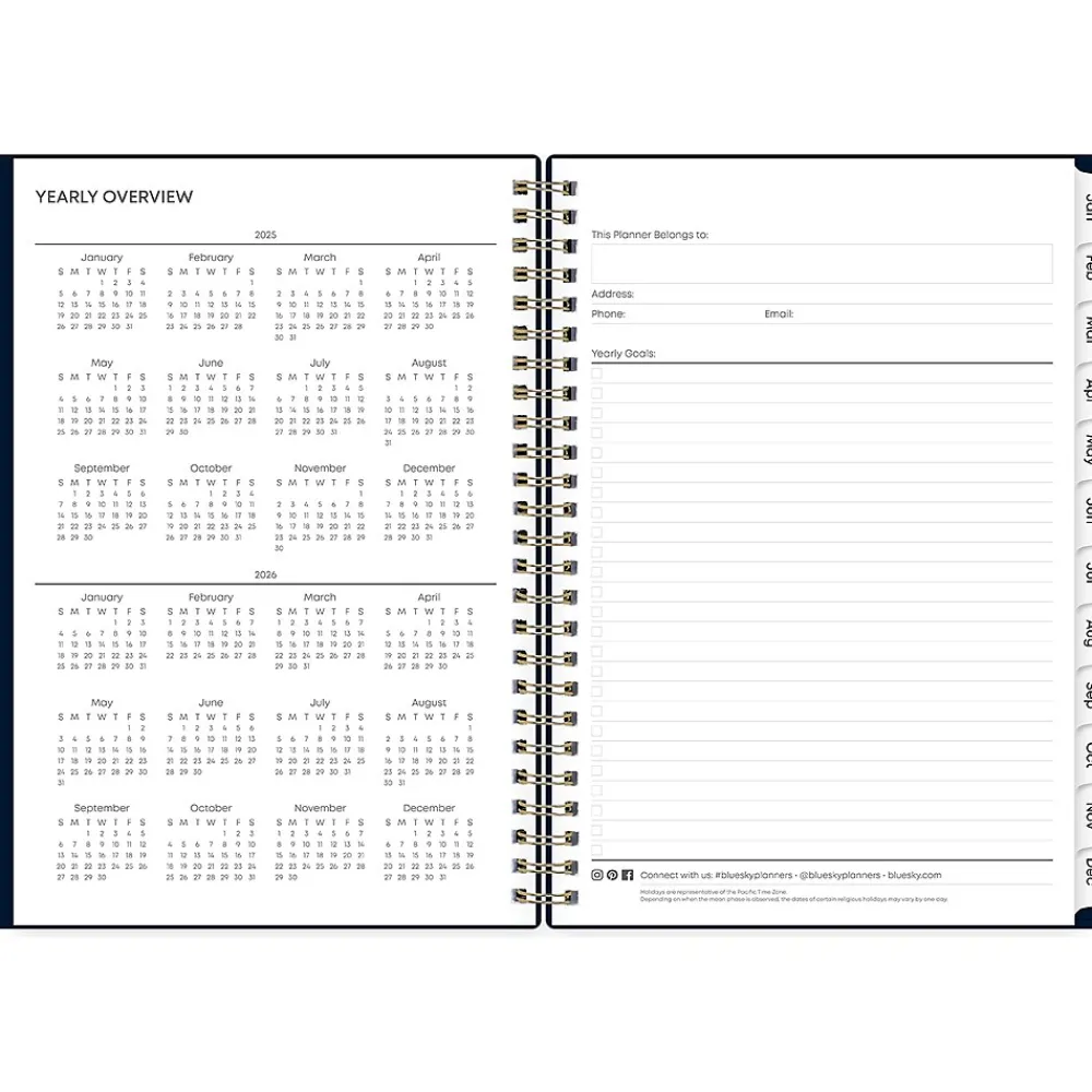 The best of both worlds: this planner features a built-in notebook. The 2025 Blue Sky Cheeyna all-in-one planner comes with 30 ruled pages for notes, weekly pages, and tabbed monthly views. Perfect for people who love to write, this planner is a notebook, organizer, and planner all rolled into one. Track dates, goals, and feedback in one convenient place.