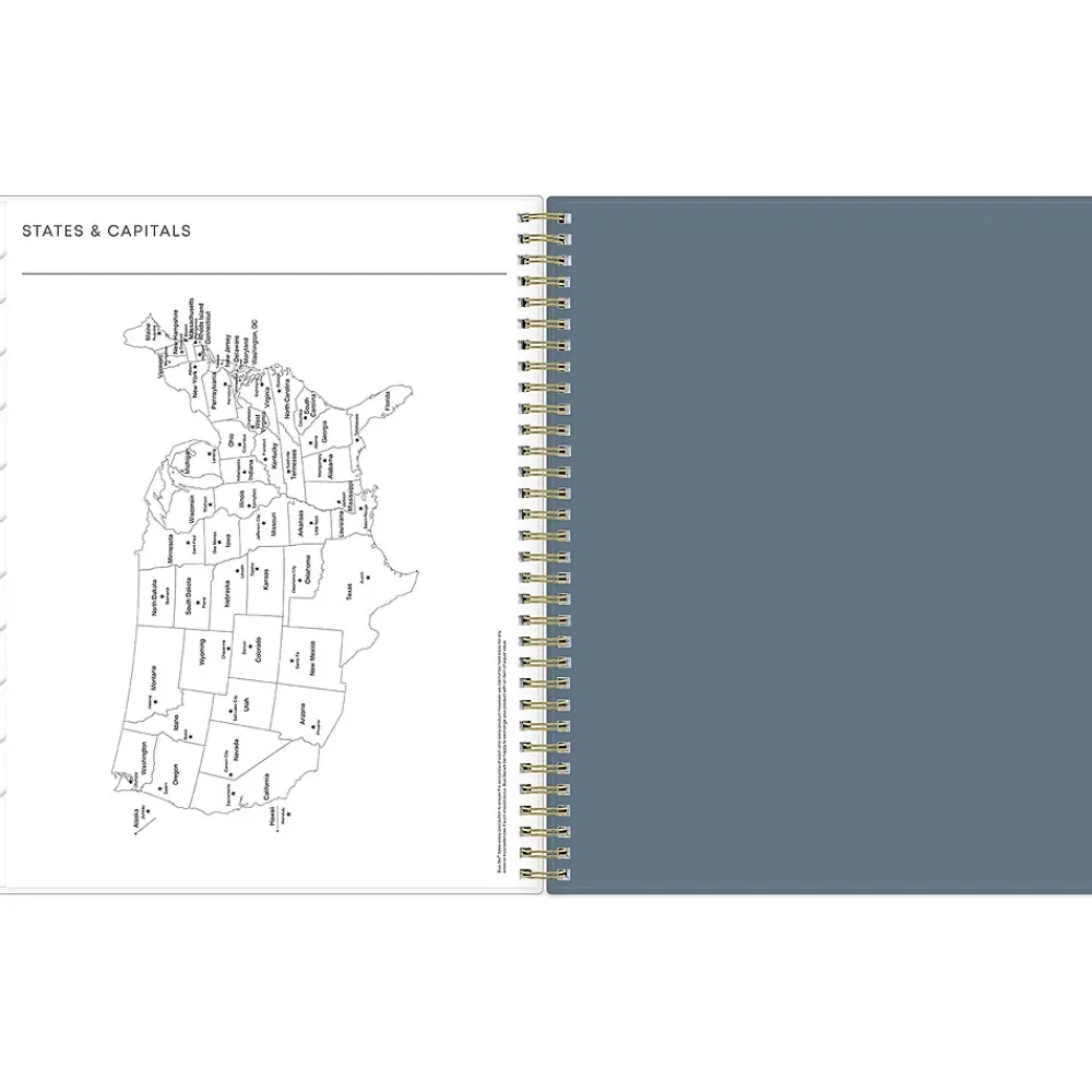 - Yearly overview, list of major holidays, and pages for your contacts, goals, important dates, and notes
