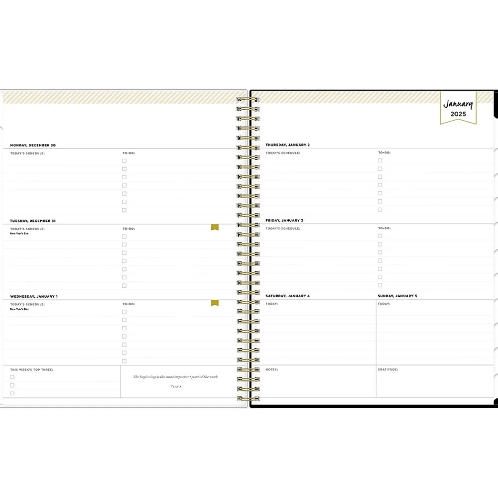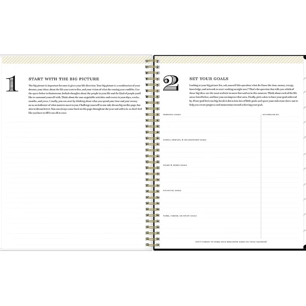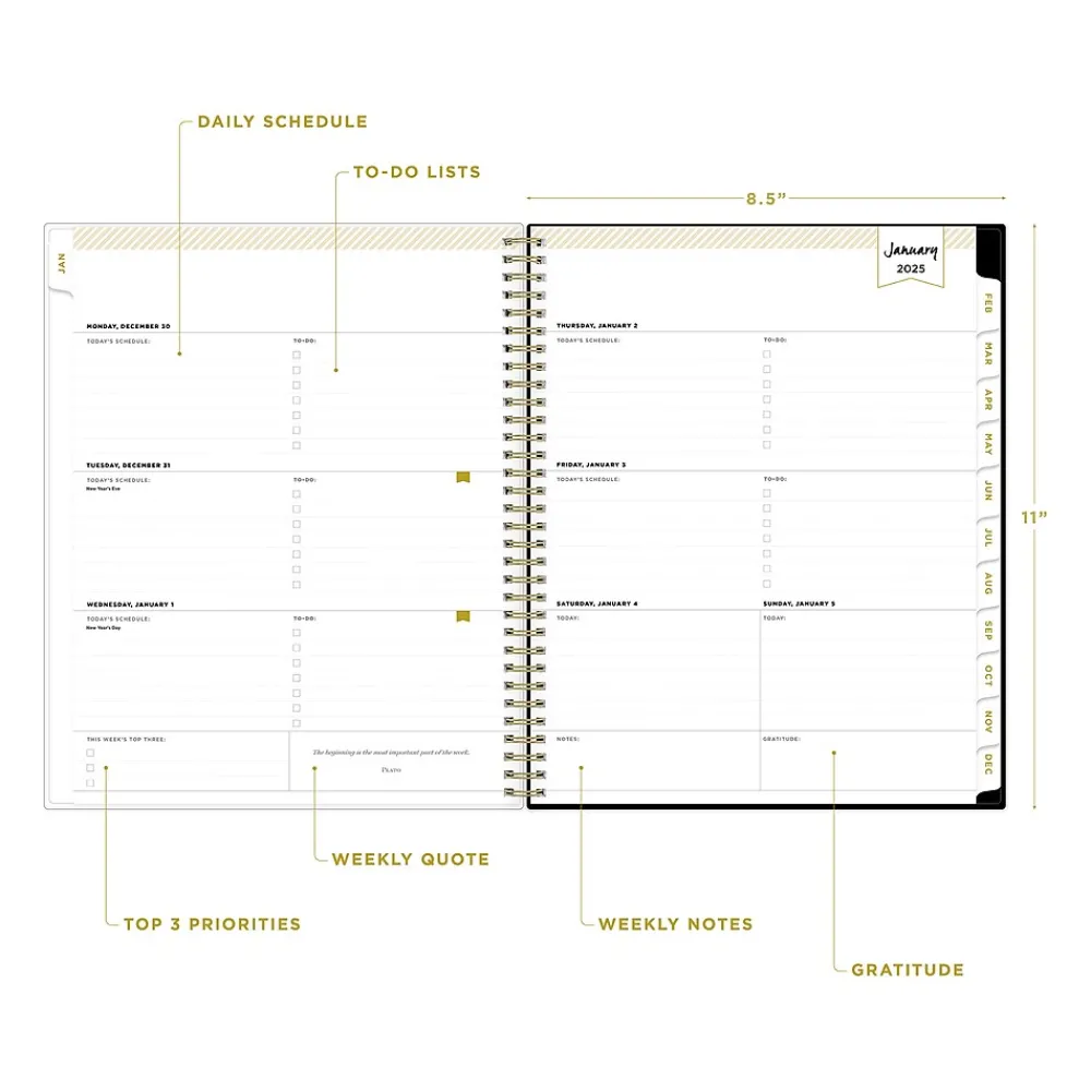 Day Designer for Blue Sky offers an elegant place to plan your year. With a customizable clear pocket cover, goal-setting worksheets, and outstanding weekly layouts, the 2025 Austen planner from Day Designer for Blue Sky helps you prioritize tasks and stay organized. It includes gold-tone foil stickers and a storage pocket for a well-designed year.