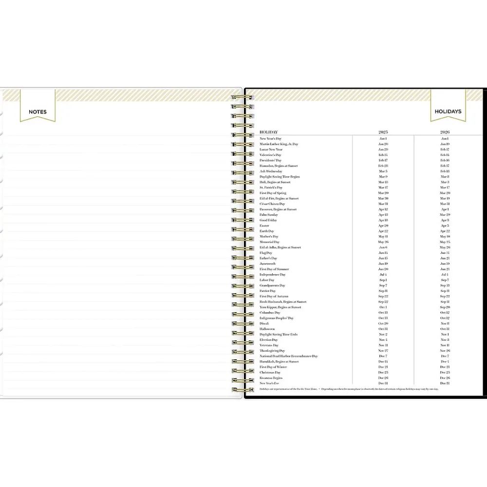 - Features two-page weekly spreads, with space for notes and quick reference calendars