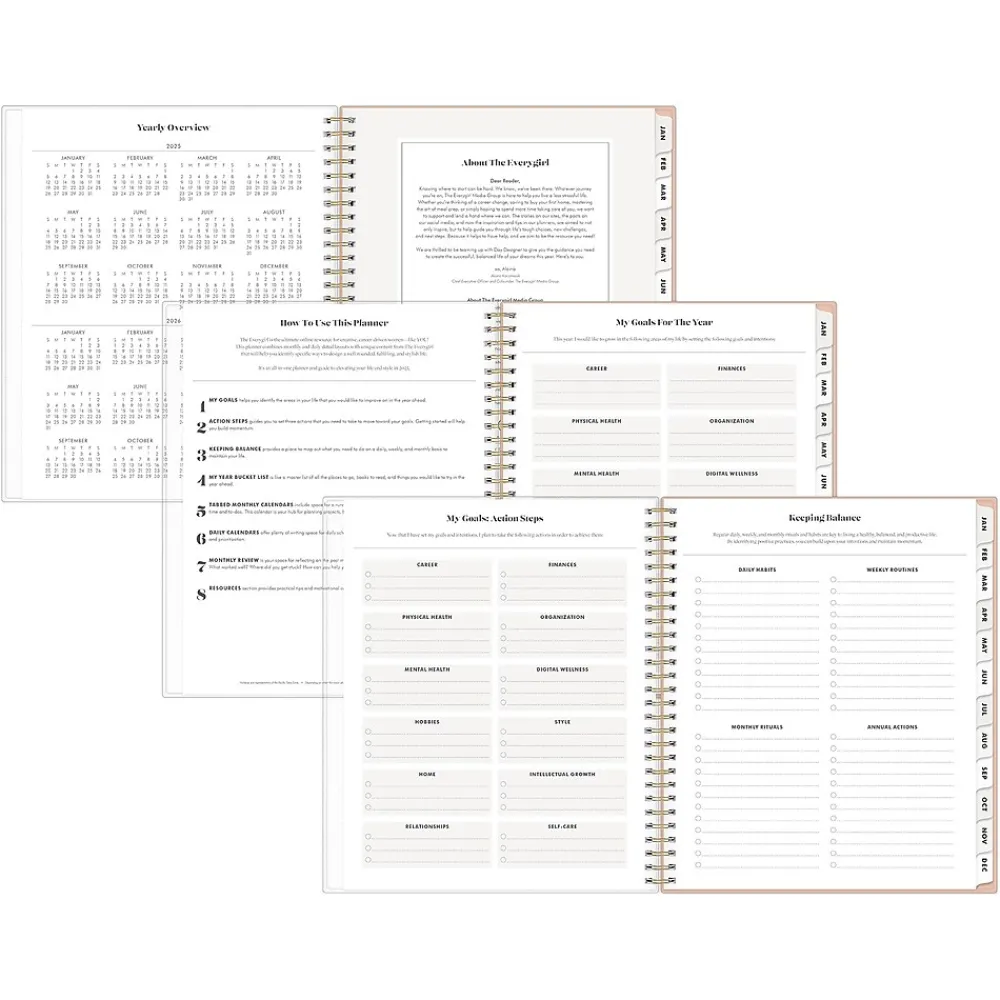 The Everygirl for Day Designer collection helps you stay organized and achieve your goals. Time-block meetings and activities with the Botanica 2025 daily planner, featuring hourly calendars and tabbed monthly views. Enjoy stickers, a storage pocket, and exclusive content from The Everygirl.