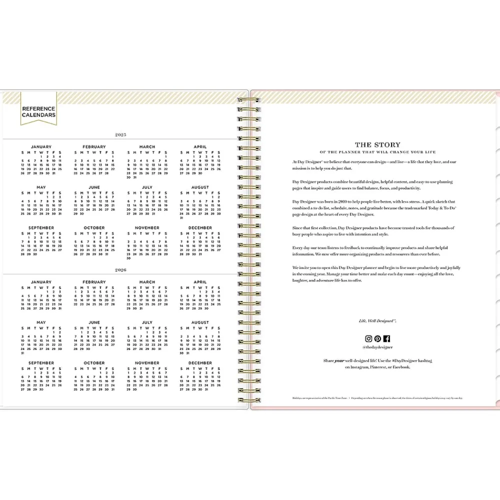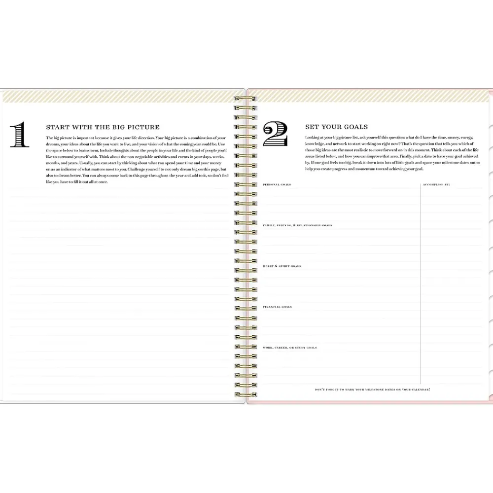 Organize your life with a planner you can customize. This 2025 Blue Sky Day Designer Roses Blush planner has a clear pocket cover for displaying photos, plus ruled weekly layouts, tabbed monthly views, and notes pages to help you manage your schedule. Use the storage pocket, gold-tone foil stickers, and goal-setting worksheets to make the most of this year.