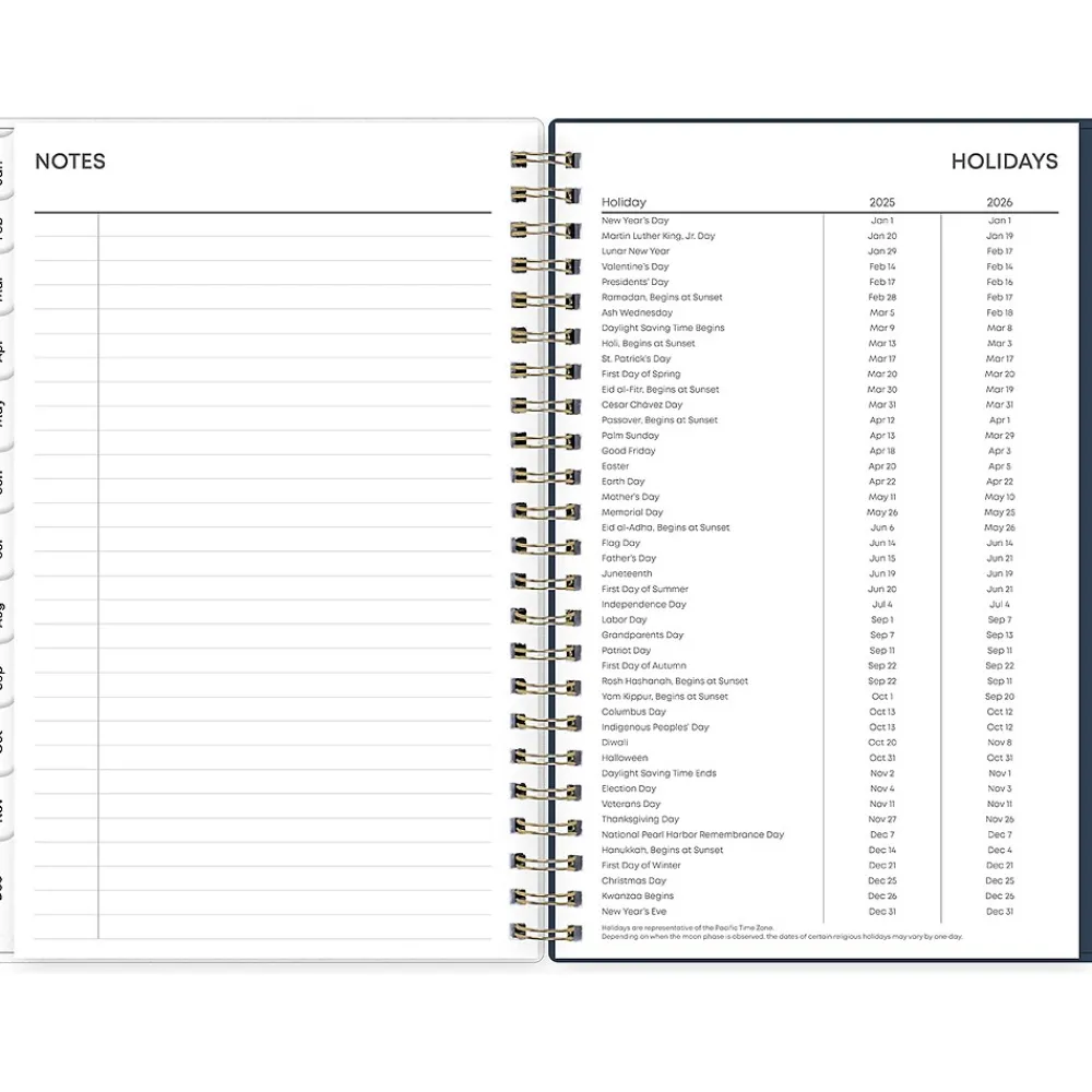 - Features two-page weekly and monthly spreads, with space for notes and quick reference calendars