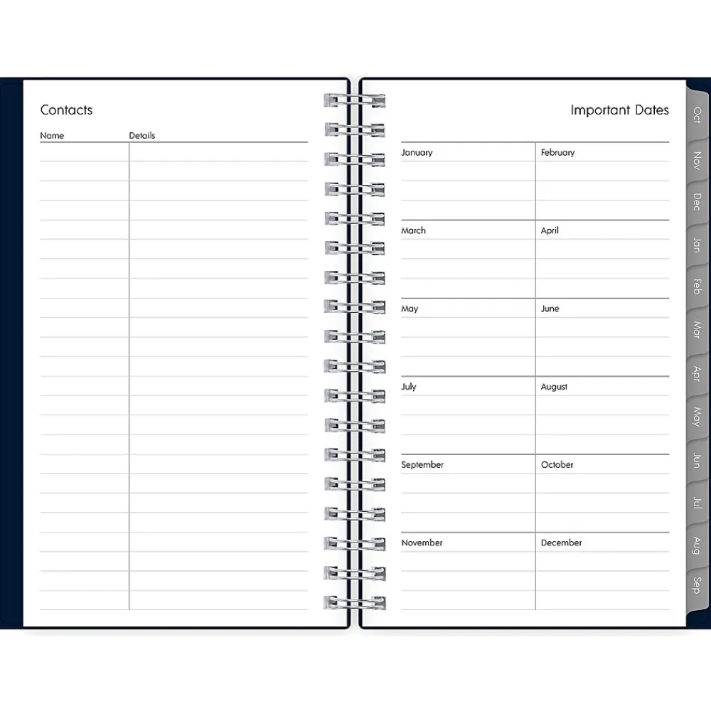 The 2025 Blue Sky Enterprise pocket planner has ruled weekly pages, tabbed monthly views, and notes pages. Use pages for your notes, goals, contacts, and important dates to stay organized.