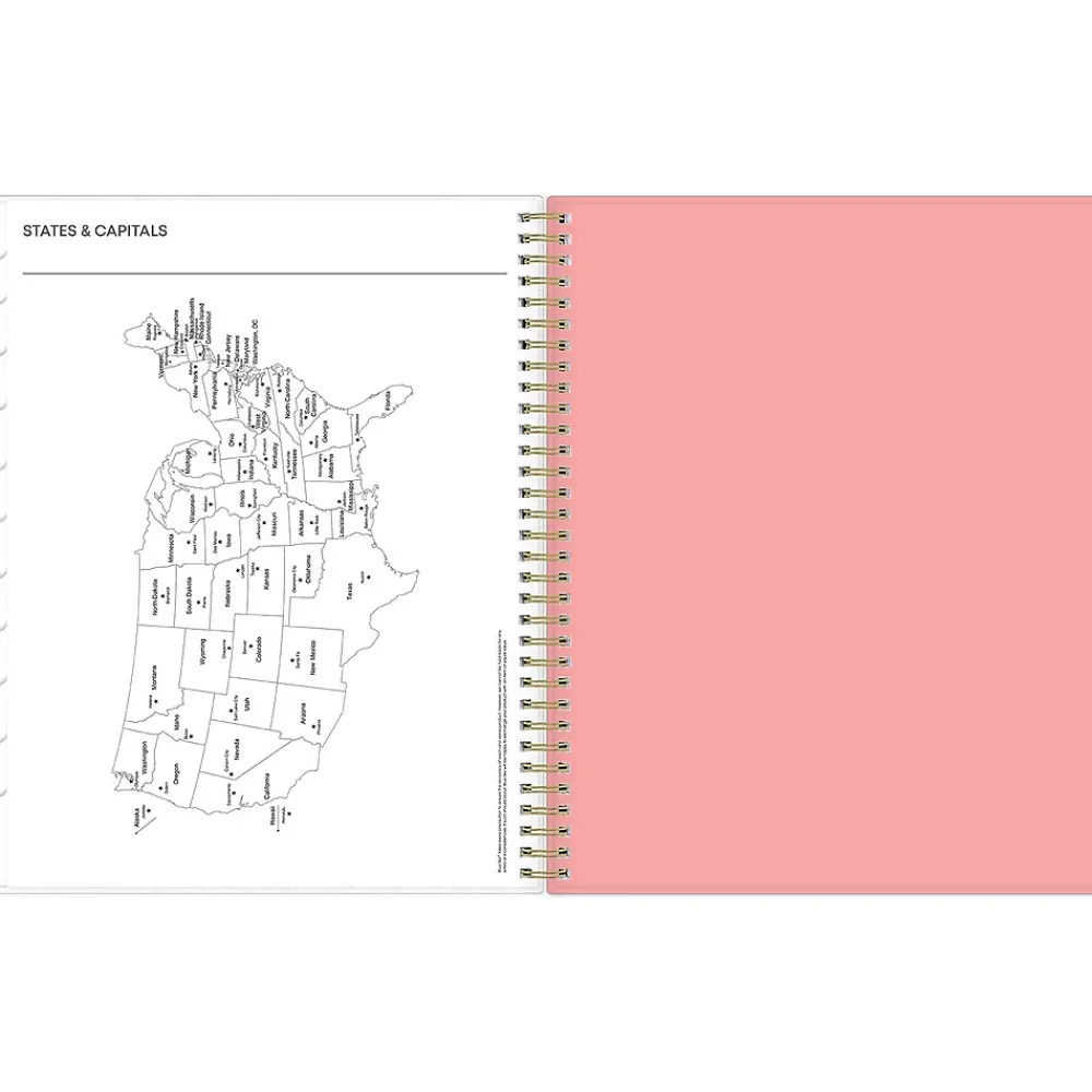 - Storage pocket, yearly overview, list of major holidays, and pages for your contacts, goals, important dates, and notes