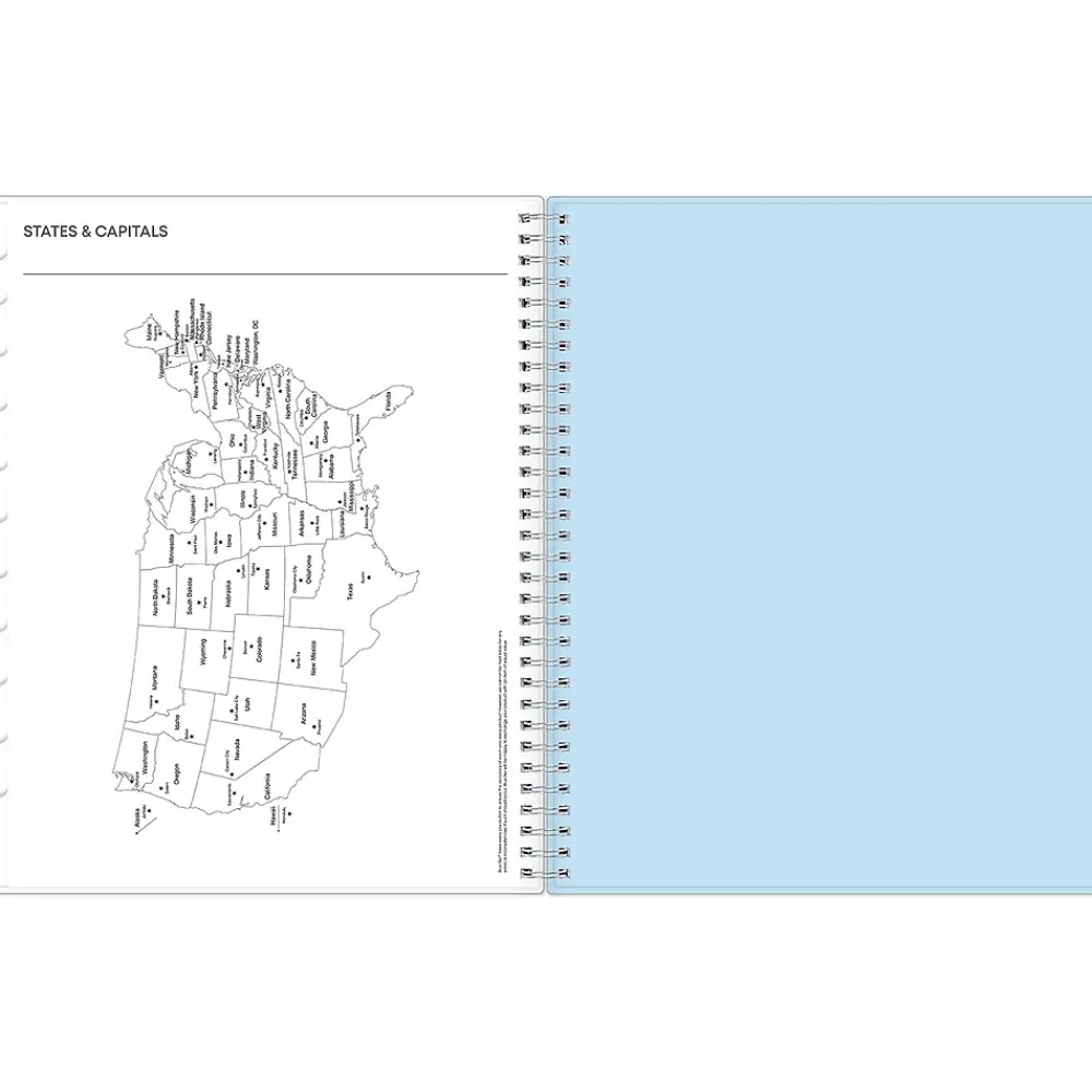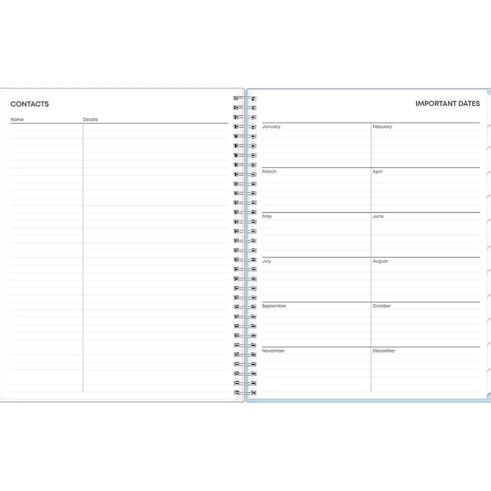 - Use a storage pocket and extra pages for contacts, goals, holidays, and important dates