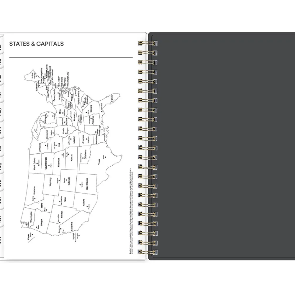 - Offers one week per two pages and one month per two pages, with space for notes and quick reference calendars