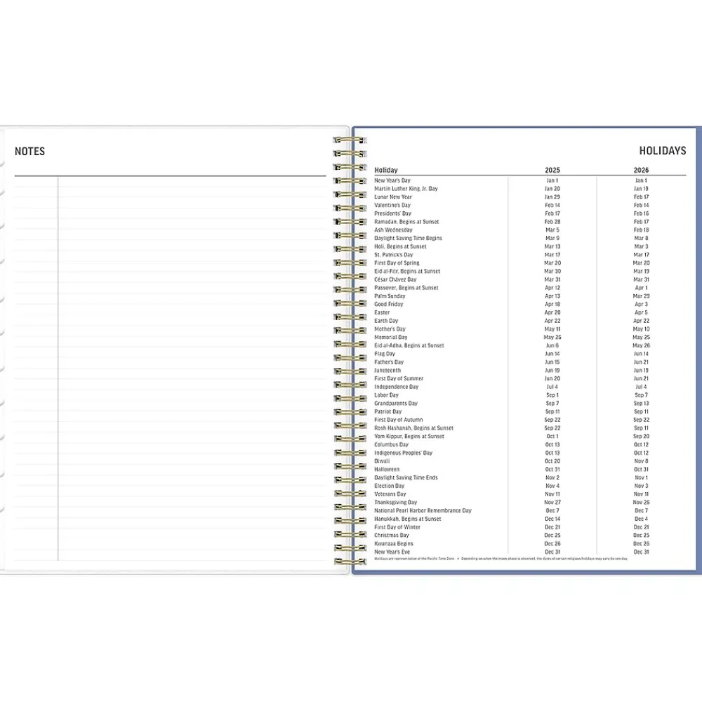 Organize your tasks and time with this Nalakina 2025 weekly and monthly planner from Blue Sky. Use the included storage pocket, ruled weekly layouts, tabbed monthly views, and notes pages to manage your schedule and achieve your goals.