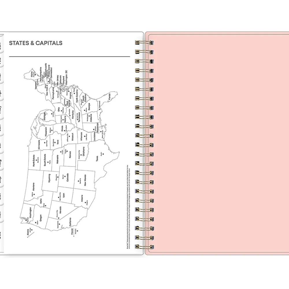 - Offers one week per two pages and one month per two pages, with space for notes and quick reference calendars