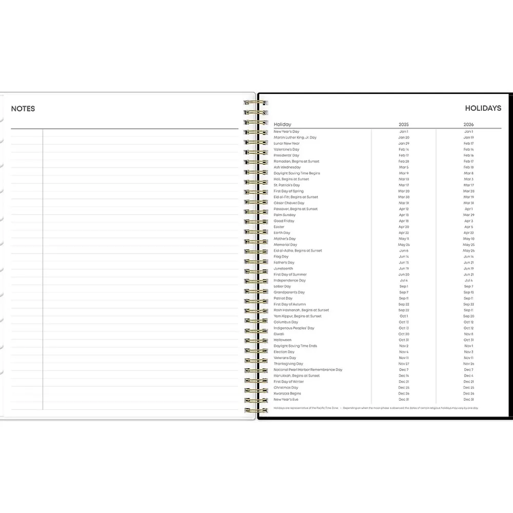 - Offers two-page weekly and monthly spreads with space for notes and quick reference calendars