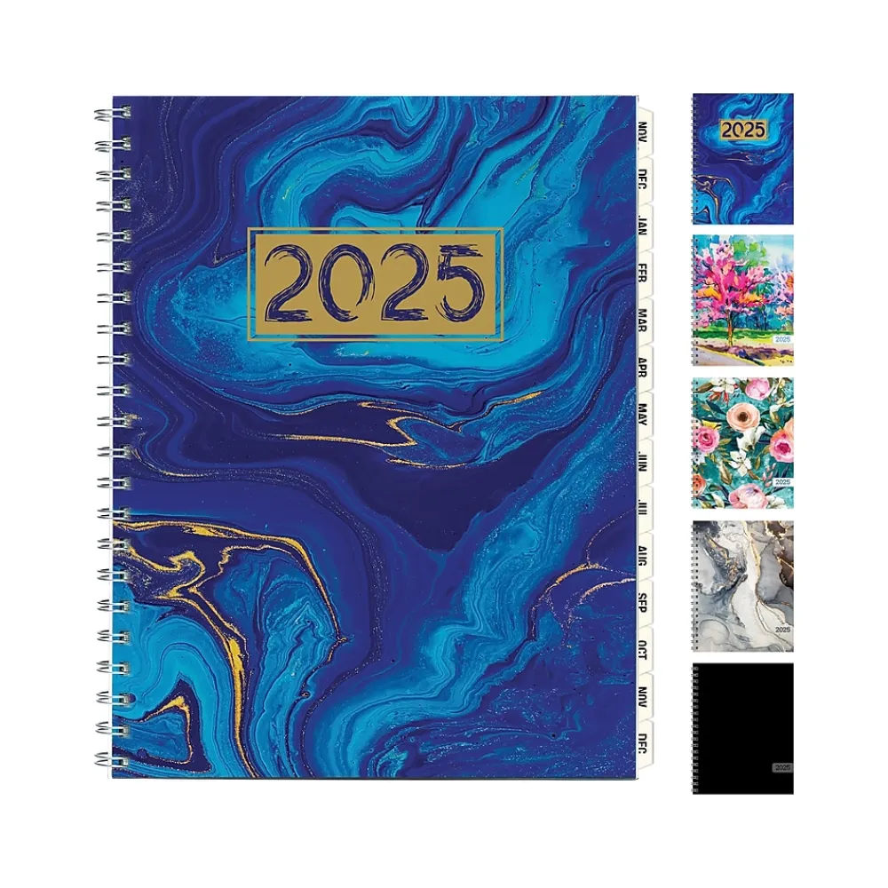 This Global Printed Products monthly planner is an essential companion for professionals who want to streamline their self-organization and keep every crucial detail at their fingertips. Meticulously designed, the planner is wrapped in a beautiful cover, exuding elegance and durability. Comes with five cover designs bound into the book. Use your favorite design by simply tearing out the other covers, or remove the covers one by one throughout the year to change up the look.