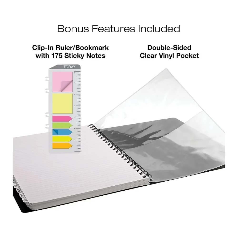 - Includes a clip-in ruler and 175 sticky notes