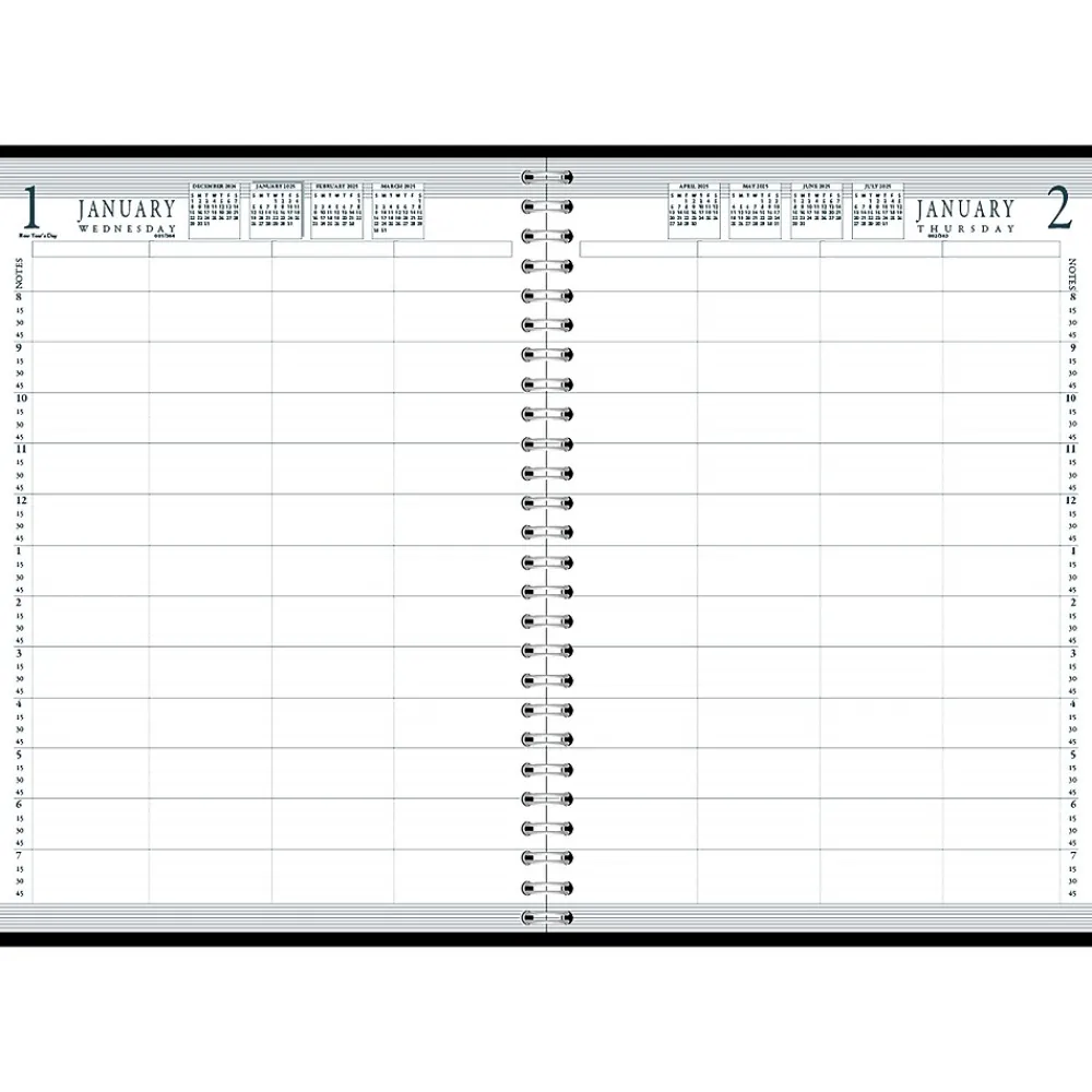 This House of Doolittle four-person daily group practice calendar planner covers 12 months, from January 2025 through December 2025, for uninterrupted, easy planning. The daily spreads offer one-day view per page, designed to plan the schedules for up to four people on a single page, with quarter-hourly appointment times from 8:00 a.m. to 7:45 p.m., Monday to Friday, and 8:00 a.m. to 5:45 p.m. for Saturdays, with open Sundays. The planner is spiral-bound with 90% recycled wire, and the hardcover is black simulated leather with an enclosed spine. This is a perfect daily planner for a busy medical doctor’s office, legal office, sales representatives, or any other team that is looking to have an easy way to schedule all of their team members’ appointments in one location. Printed with soy-based inks on 100% postconsumer recycled paper. Made in the USA and FSC certified.