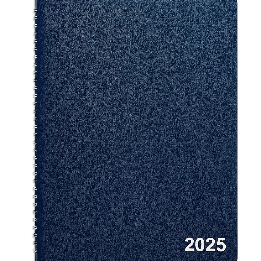 Organize your workday with this 2025 weekly appointment book. The leatherette cover protects against dust and damage, while the 14-month format helps you manage appointment times. This Staples 8 x 11-inch navy weekly appointment book features a spiral binding to make flipping through pages easy and a compact size for convenient storage in your desk or briefcase.
