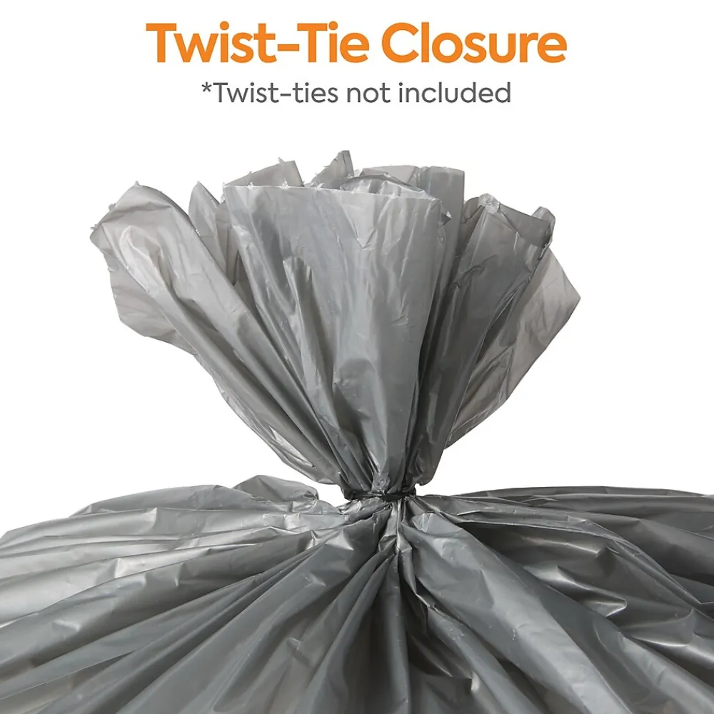 Stay on top of your office waste with these gray trash bags. The star-sealed bottom distributes weight evenly to reduce the risk of tears and leaks, while the super heavy-strength linear low-density polyethylene resists puncturing from sharp objects, making them suitable for cafeterias and institutional use. These 30 to 33-gallon Coastwide Professional™ trash bags come in a carton of 100, ensuring an ample supply for your cleaning closet.