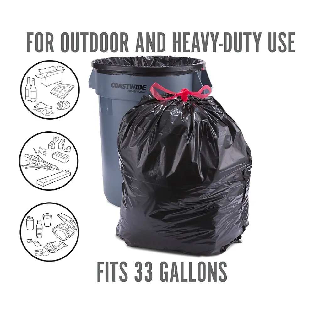 - 33 gal. heavy-strength industrial drawstring trash bags