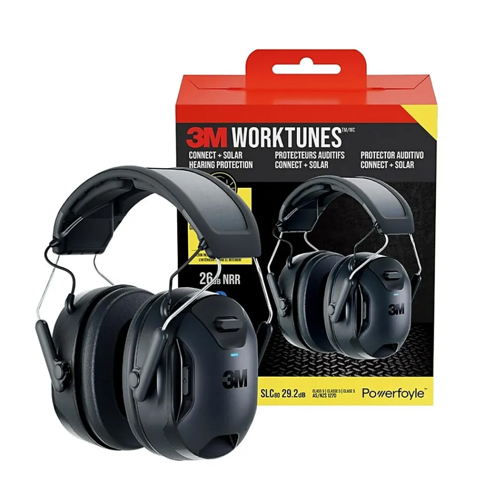 The future of hearing protection is bright. Introducing the all-new 3M™ WorkTunes™ Connect + Solar Wireless Hearing Protector. Engineered with a Powerfoyle™ Solar Cell, these hearing protection headphones charge continuously in outdoor or indoor light. Equipped with premium sound quality and the latest Bluetooth® wireless technology for all-day entertainment that works as long as you do — at home or on the jobsite. Help keep hazardous noises at bay while streaming music, podcasts, and audiobooks from your smartphone or other mobile devices. Seamlessly make or take phone calls with Intelligent Background-Noise Reduction that enhances call clarity in noisy environments. Water and sweat resistant, these hearing protection headphones are designed for durability and extended wear. Whether you’re sawing or mowing, plowing or drilling, the soft, conformable earcups and lightweight, low-profile design help you stay comfortable on any job.
