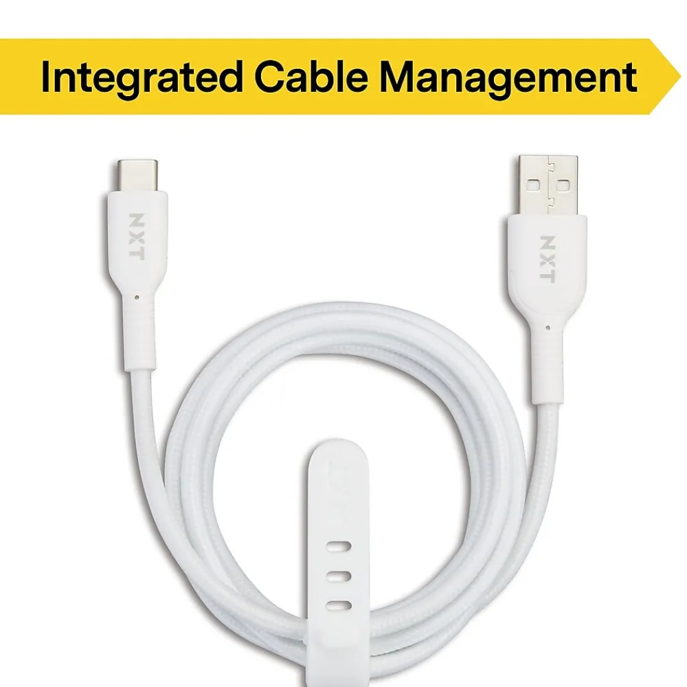 Connect this 4-foot cable to laptops, compatible smartphones and power sources for versatile operation. The braided cable is constructed to withstand the rigors of daily use. With up to 15 watts of charging power and a 480MB/sec. transfer speed, this NXT Technologies™ USB-C to USB-A cable delivers flexible use in the office.