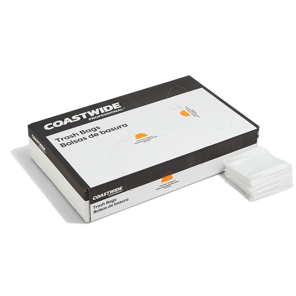 Dispose of sharp and wet objects safely using these waste disposal bags. A carrying capacity of up to 4 gallons is ideal for small trash bins, offering unobtrusive placement throughout the workplace, while the clear material lets you know beforehand when a bag needs changing. These Coastwide Professional™ low-density clear trash bags feature two perforation options for easier dispensing.