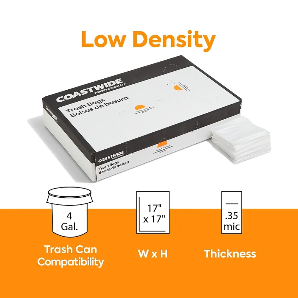 - These 4 gal. capacity light strength bags are perfect for everyday trash applications