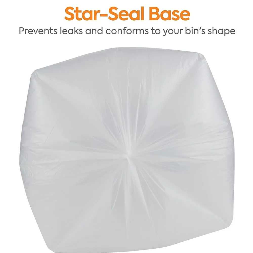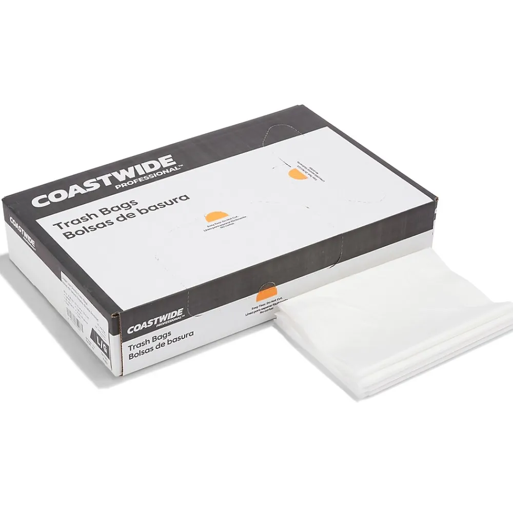 Handle your industrial waste safely with these durable trash bags. The sturdy star-sealed bottom distributes weight evenly to reduce the risk of tears and leakage, while the clear material provides a view of the objects for added security. These 40 to 45-gallon Coastwide Professional™ trash bags are 1-mil thick to resist puncturing or ripping by sharp items, ensuring safe and reliable waste disposal.