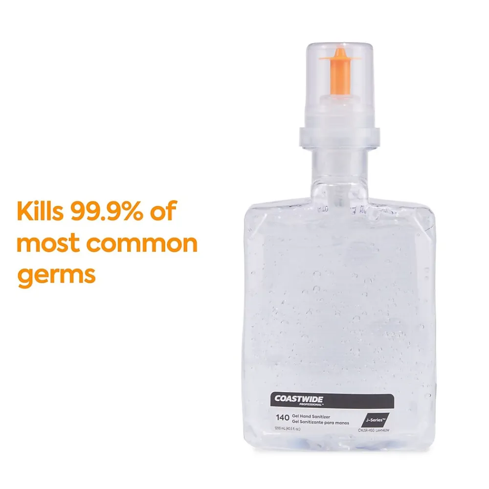 Maintain a hygienic workplace with these gel hand sanitizers. Compatibility with both the manual and automatic J-Series sanitizer dispensers lets you regulate the dispensing of foam and gel sanitizers, and the color-coded interior offers a visual guide for easy identification. These Coastwide Professional J-Series gel hand sanitizers contain 70% ethyl alcohol to deter the spread of germs, while the two-refill carton keeps your supply closet stocked.