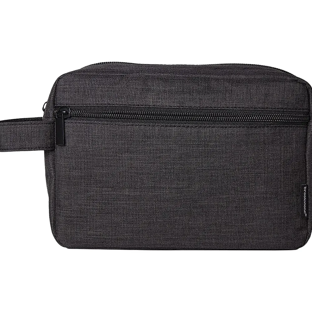 Meet your perfect travel companion. Made of a soft, lightweight fabric, the Brookstone toiletry pouch offers zipper security and room for lots of toiletries. A purposeful and practical design does not compromise on style.