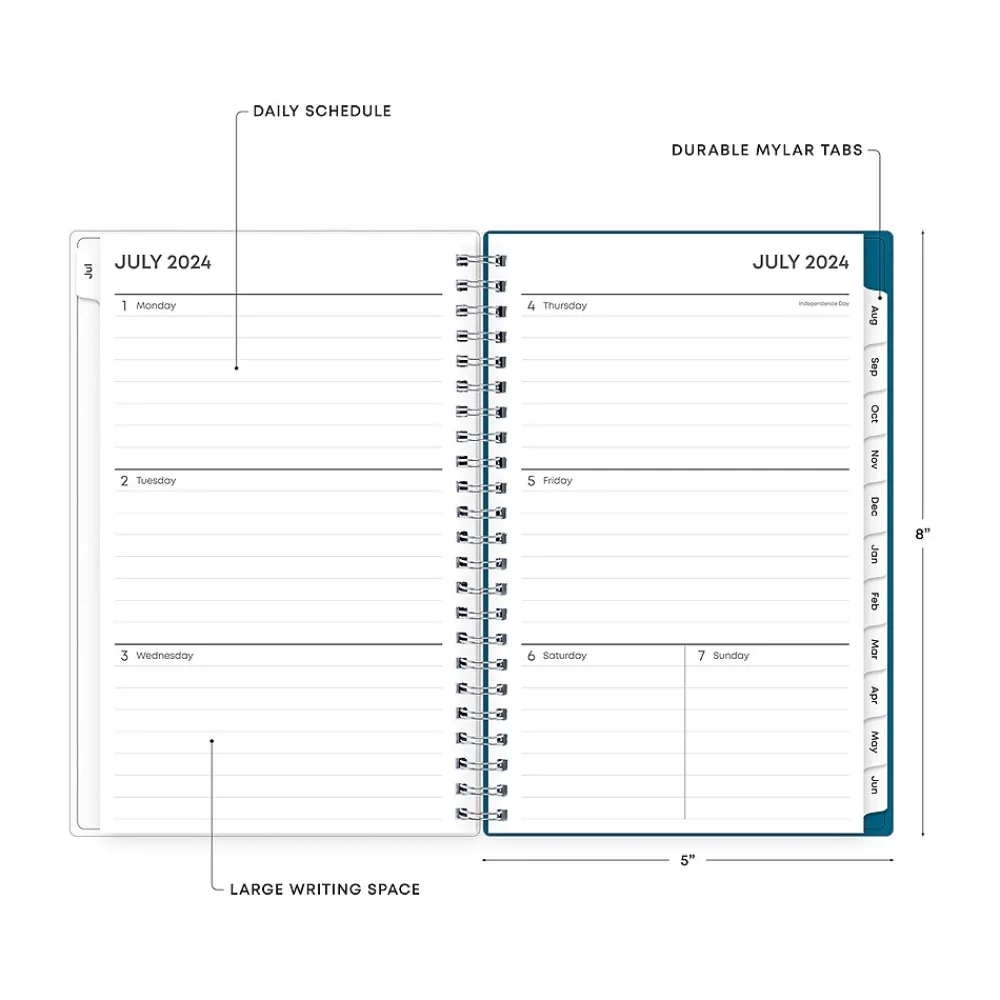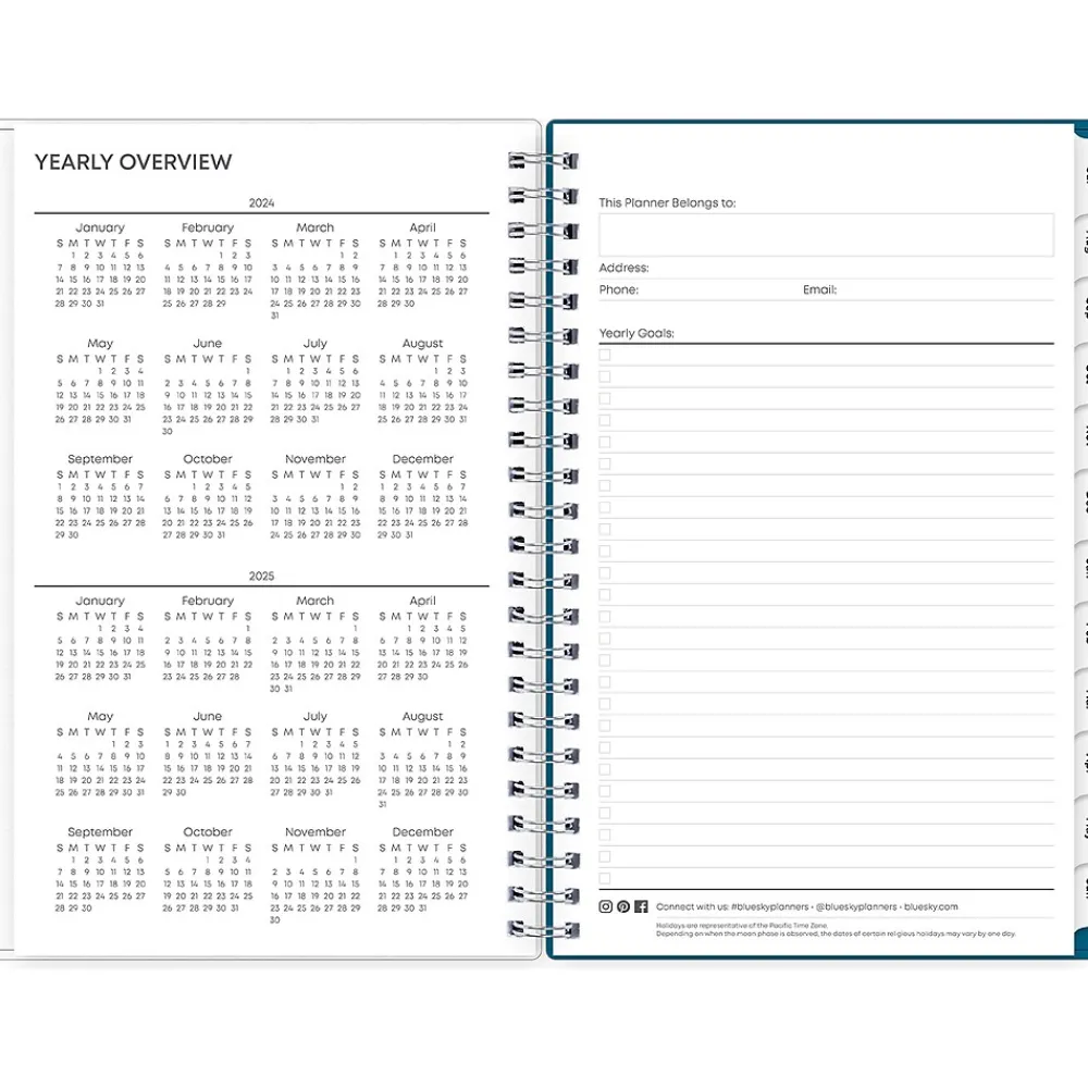 Academic Planners|Blue Sky 2024-2025 Bakah Blue 5″ x 8″ Academic Weekly & Monthly Planner, Plastic Cover, Blue/White (131969-A25)