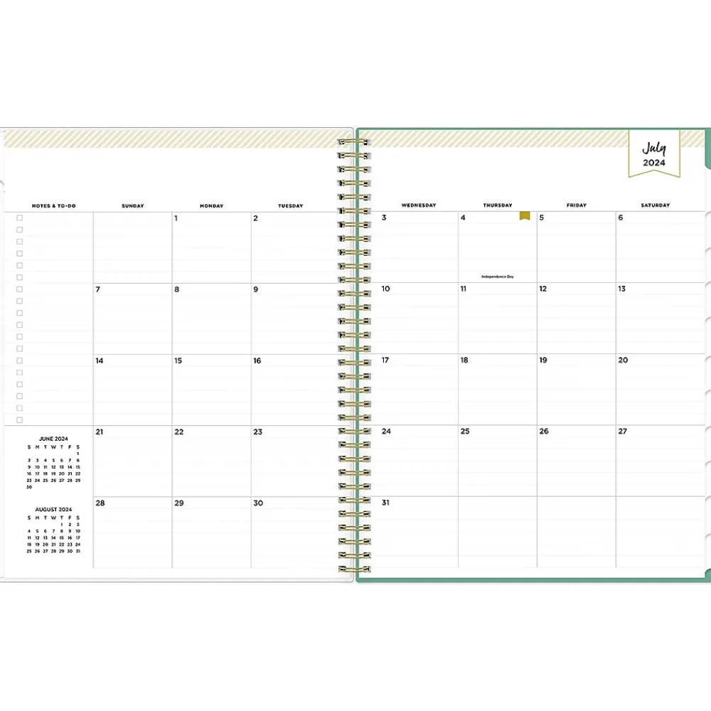 - Weekly and monthly planner covers a 12-month academic date range from July 2024 to June 2025