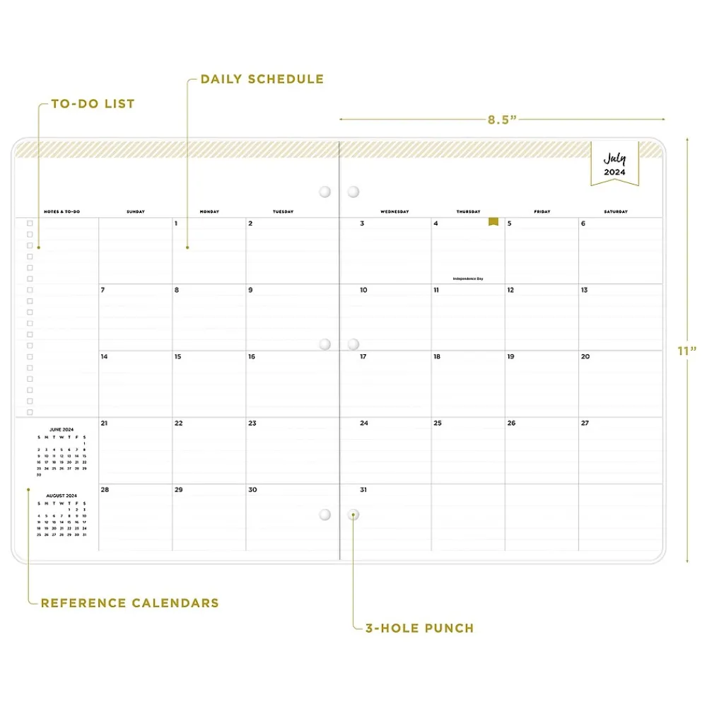 Blue Sky planners always make the grade. A valuable tool to organize your days, the Blue Sky Day Designer Spotty Small Gold monthly academic planner has a stapled spine for snag-free storing and a three-hole punch for snapping into your binder.