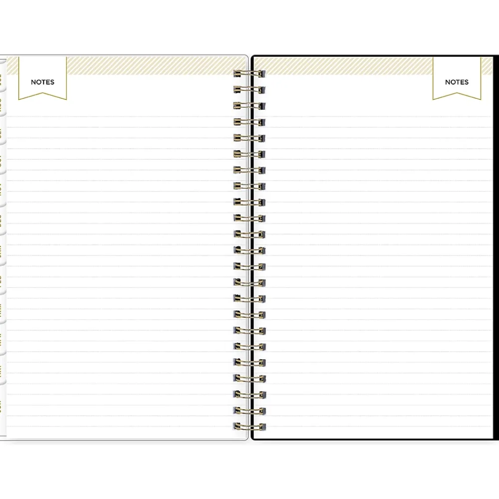 - Features one month per two pages and one week per two pages, with space for notes and quick reference calendars
