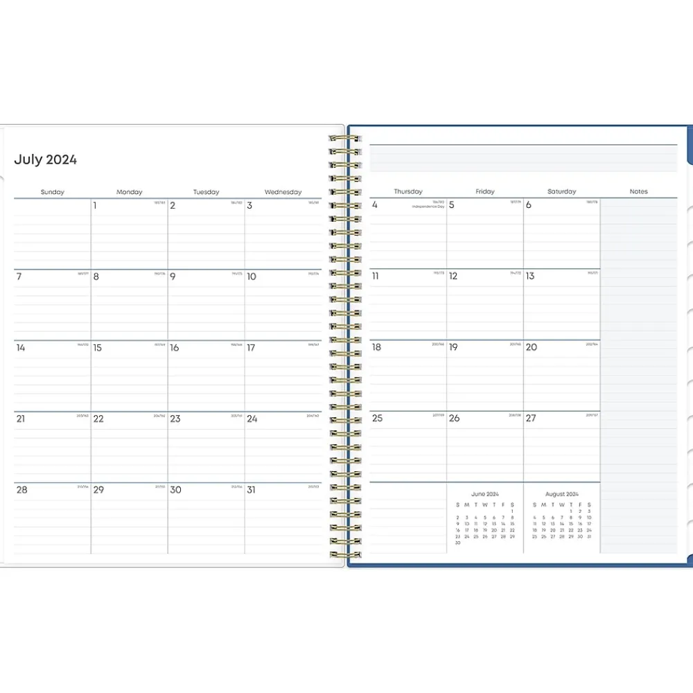 - Offers one month per two pages and one week per two pages, with space for notes and quick reference calendars