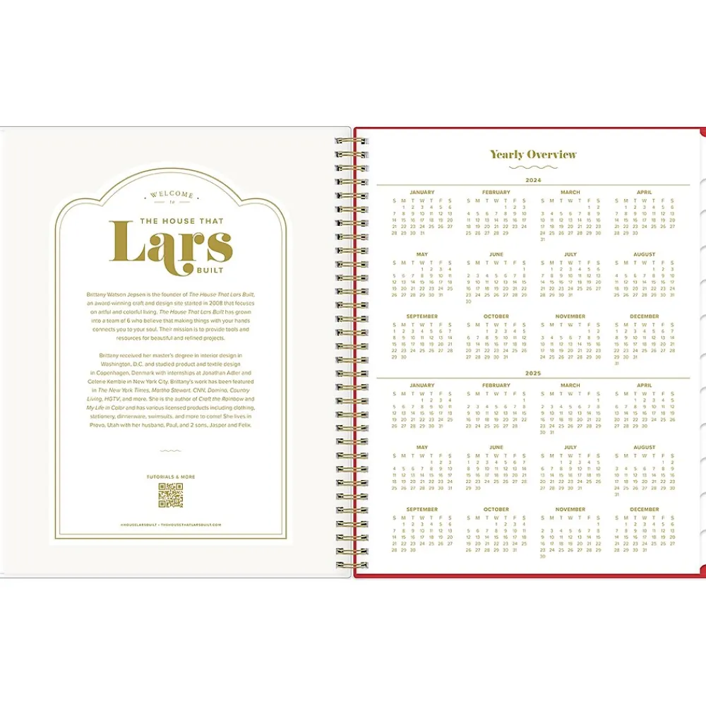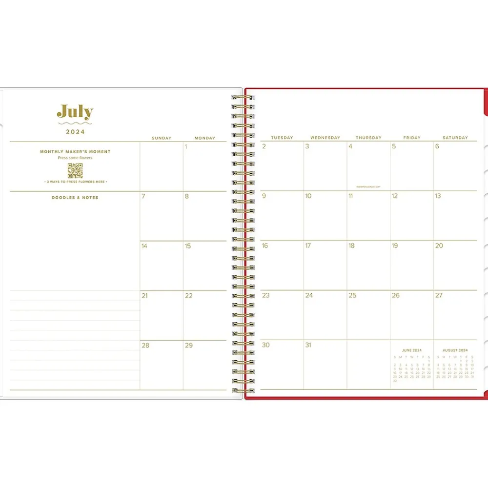 - Features one month per two pages and one week per two pages, with space for notes and quick reference calendars