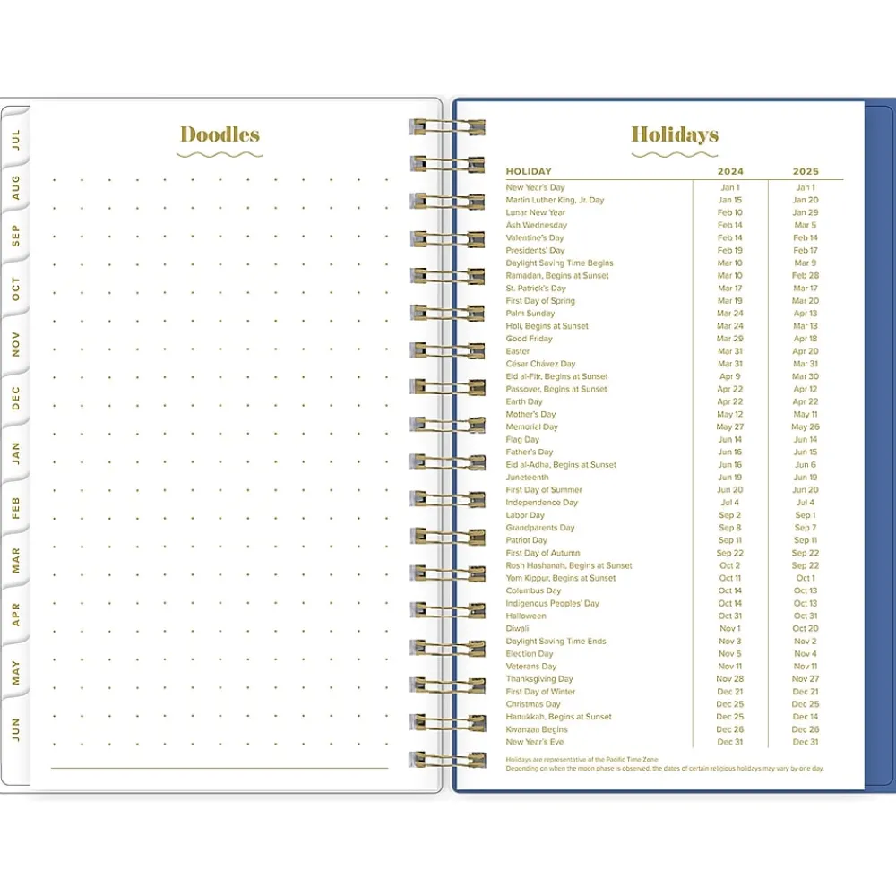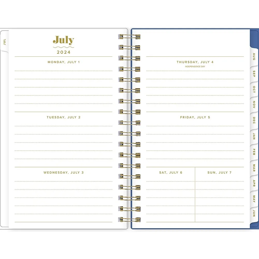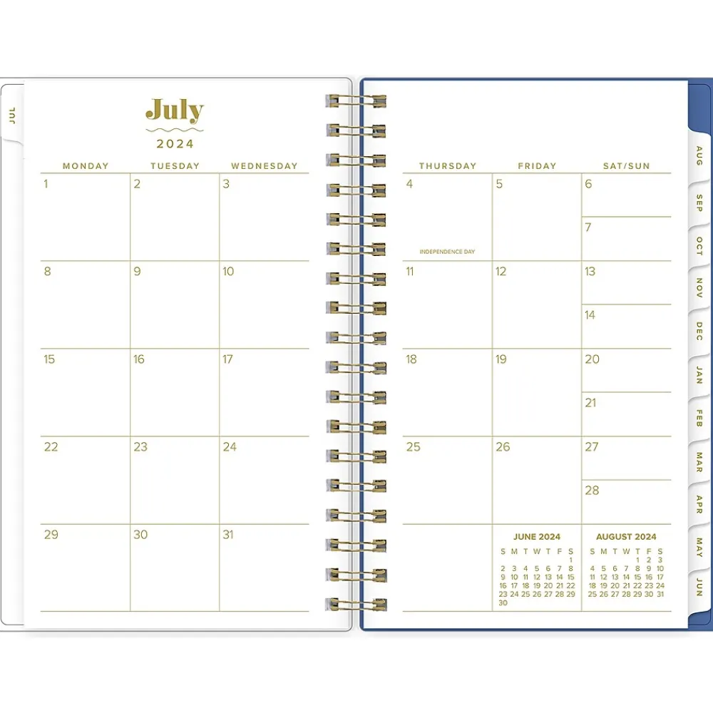 - Weekly and monthly planner covers a 12-month academic date range from July 2024 to June 2025