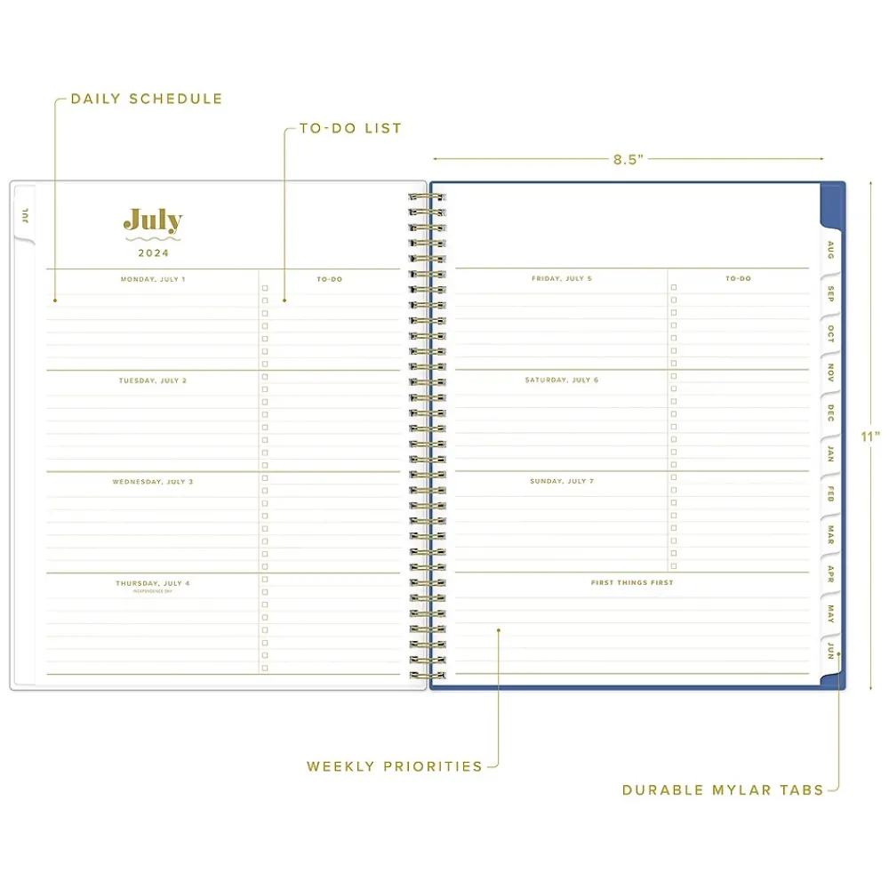 - Features two-page weekly and monthly spreads with space for notes and quick reference calendars