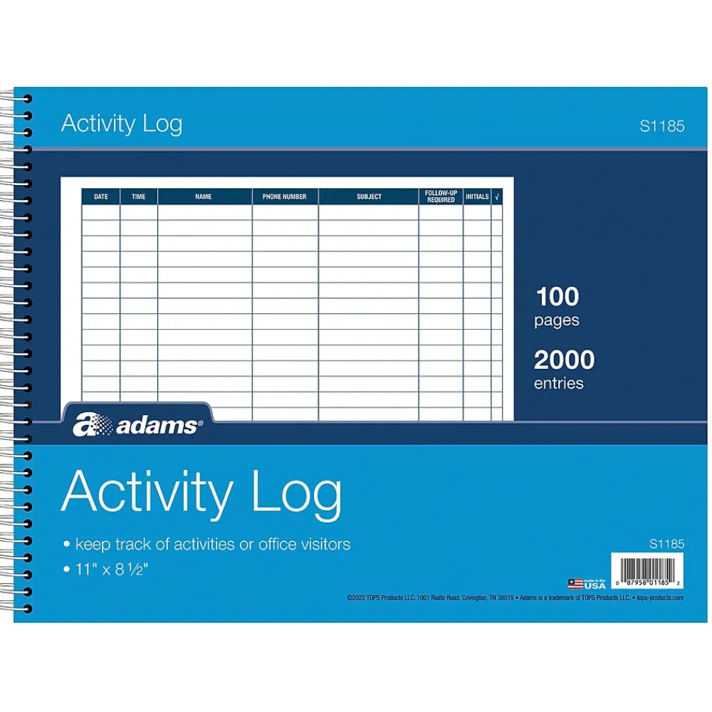 Refer back to past walk-in client details with this activity log book. The preprinted design provides convenient prompts, ensuring the customer or guest writes down all pertinent information. This Adams spiral-bound 100-page activity log book features a spiral binding, allowing for quick page turning.