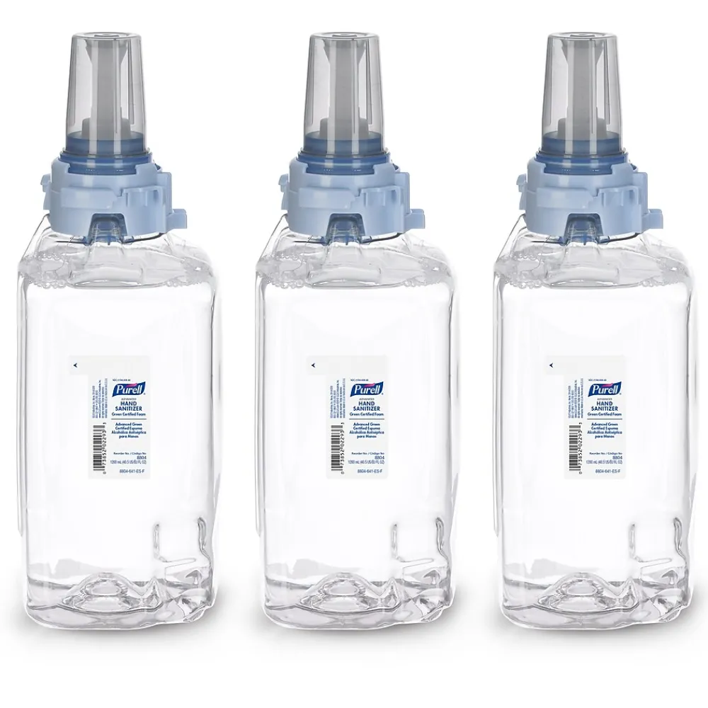 PURELL Advanced Green Certified Hand Sanitizer Foam, 1200 mL refill for ADX-12 dispenser, is a nonaerosol foam that contains 70 percent ethyl alcohol to help reduce the number of germs on hands.It meets the EcoLogo hand sanitizer standard UL 2783 for its use of bio-based raw materials, environmentally safer ingredients and packaging, and for enhanced recyclability compared to other products in its category. This sealed refill bottle for ADX-12 dispensers (sold separately) is made of clear plastic to show the fill level and includes a fresh dispensing valve to help reduce potential germ exposure. The hand sanitizer includes four moisturizers to help keep skin hydrated. It is made with ethanol produced with renewable natural resources, and contains no fragrance or dye.