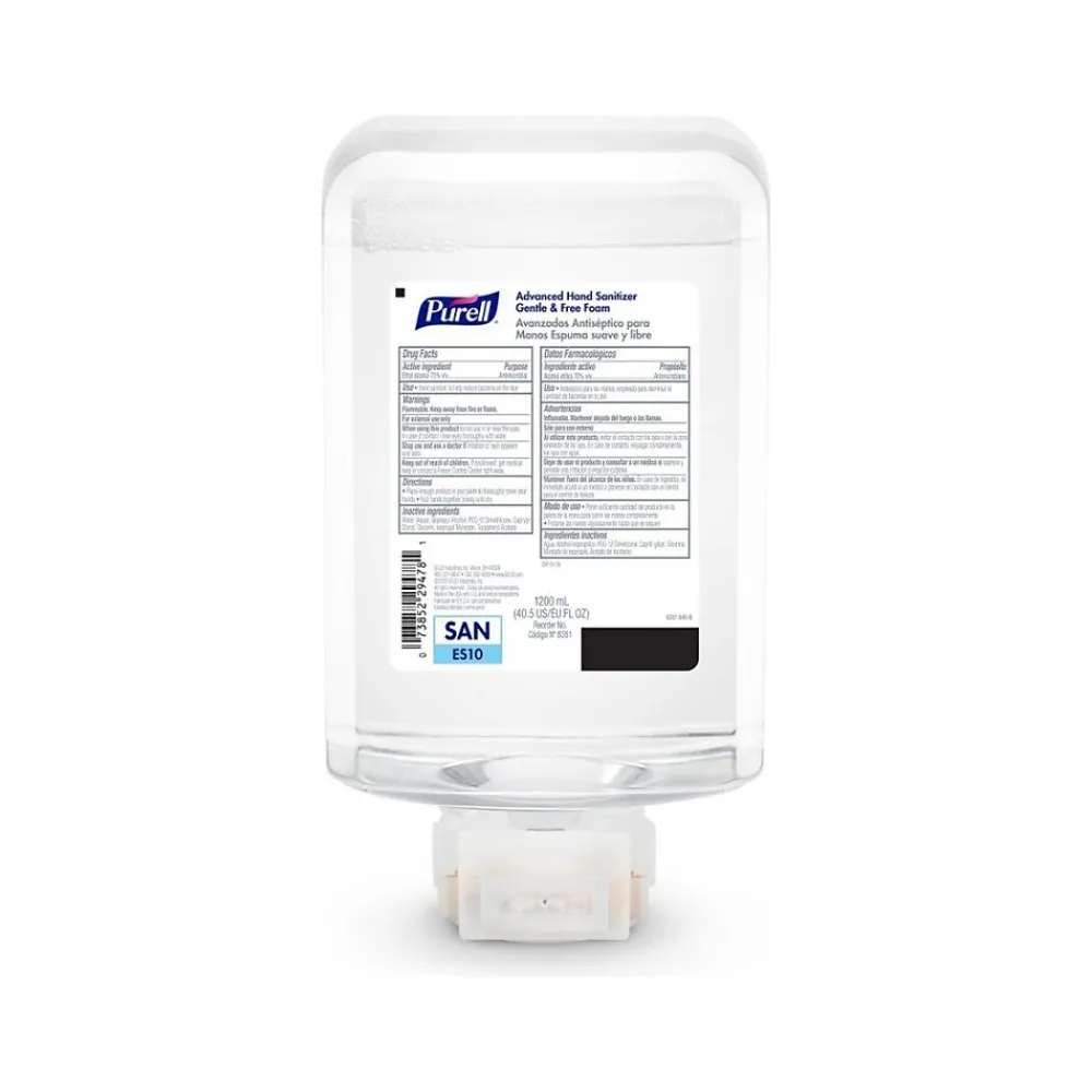 - Case Includes: 2 ā PURELLĀ® Brand Advanced Hand Sanitizer Fragrance Free Foam, 1200 mL Refills for the ES10 Automatic Hand Sanitizer Dispenser. ES10 dispensers (SKUs 8324-E1, 8320-E1, 8328-E1) are sold separately.