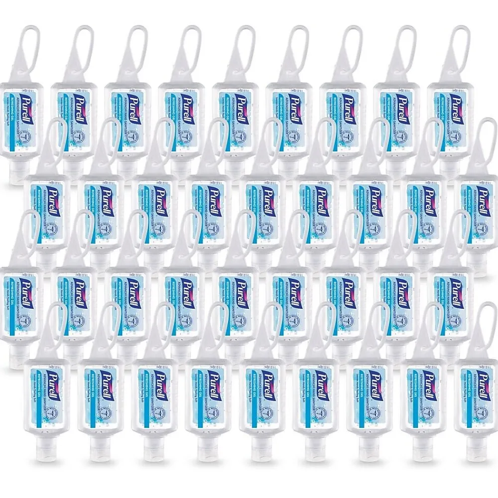- Case Includes: 36 – PURELL Advanced Hand Sanitizer Refreshing Gel for Workplaces – 1 fl oz Flip Cap Bottles with JELLY WRAP Carrier. Please note: Due to high demand, included JELLY WRAP Carriers may vary in color