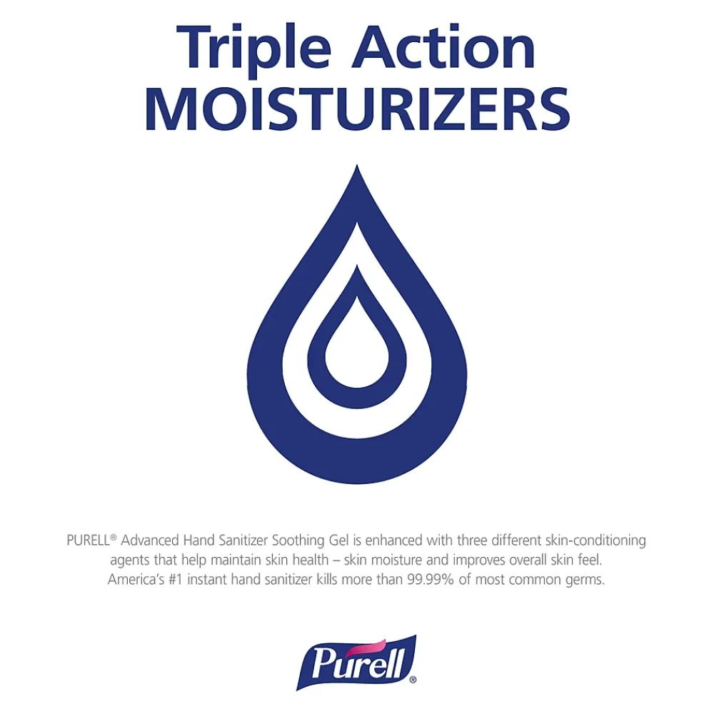 - PURELL® hand sanitizer gel bottle provides protection against germs throughout the day while employees and visitors are on-the-go