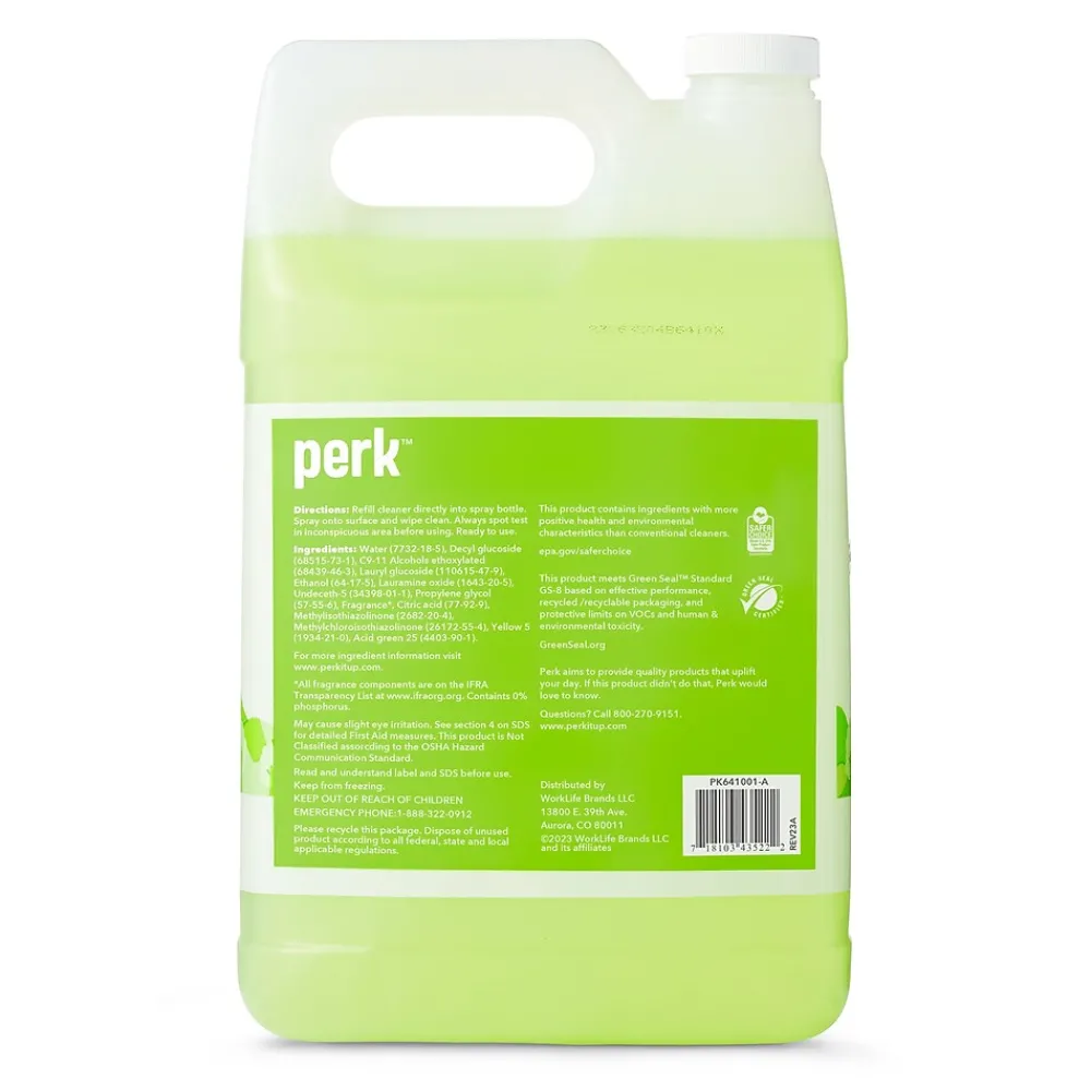 With its third party environmental certifications and a phosphate and ammonia-free formula, this cleaner is better for people and the environment. This Perk refill cleaner is ideal for cleaning desks, cabinets, porcelain and other water-washable surfaces.
