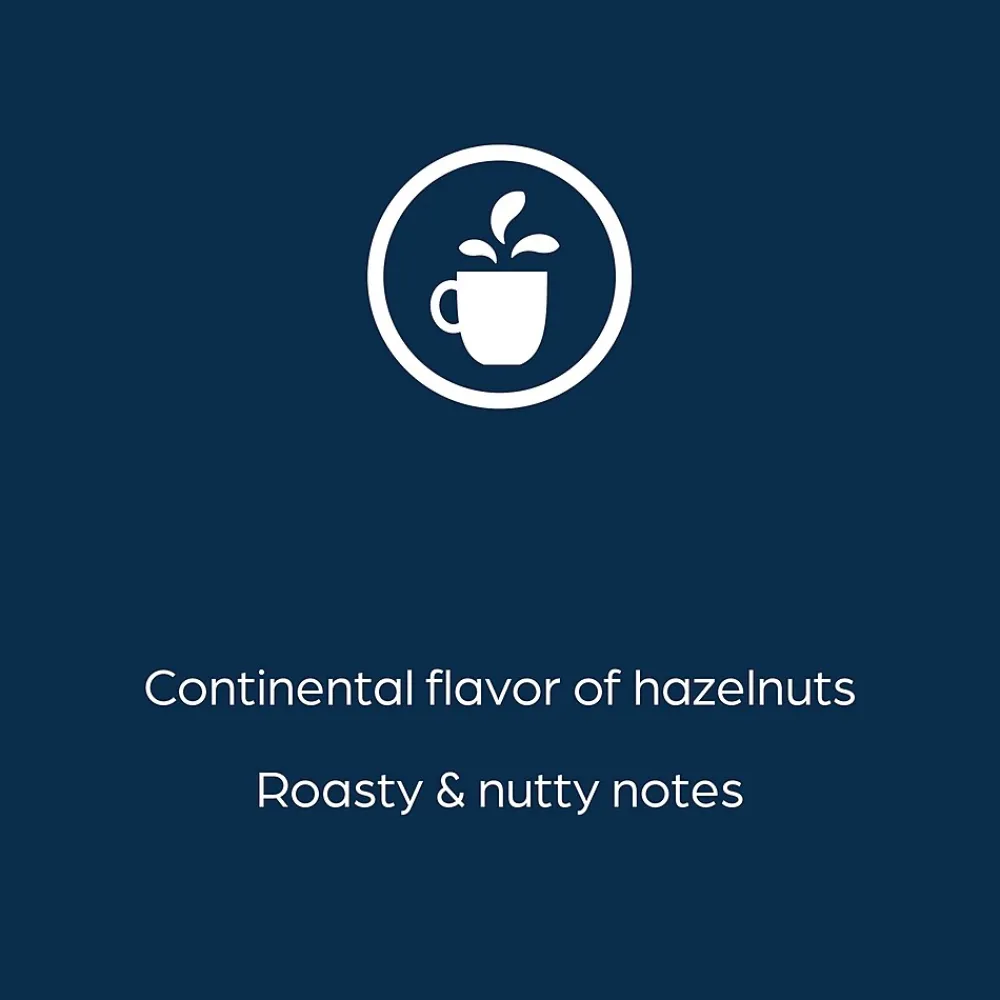 Enjoy a luxurious blend of medium roasted beans and the continental flavor of hazelnuts.