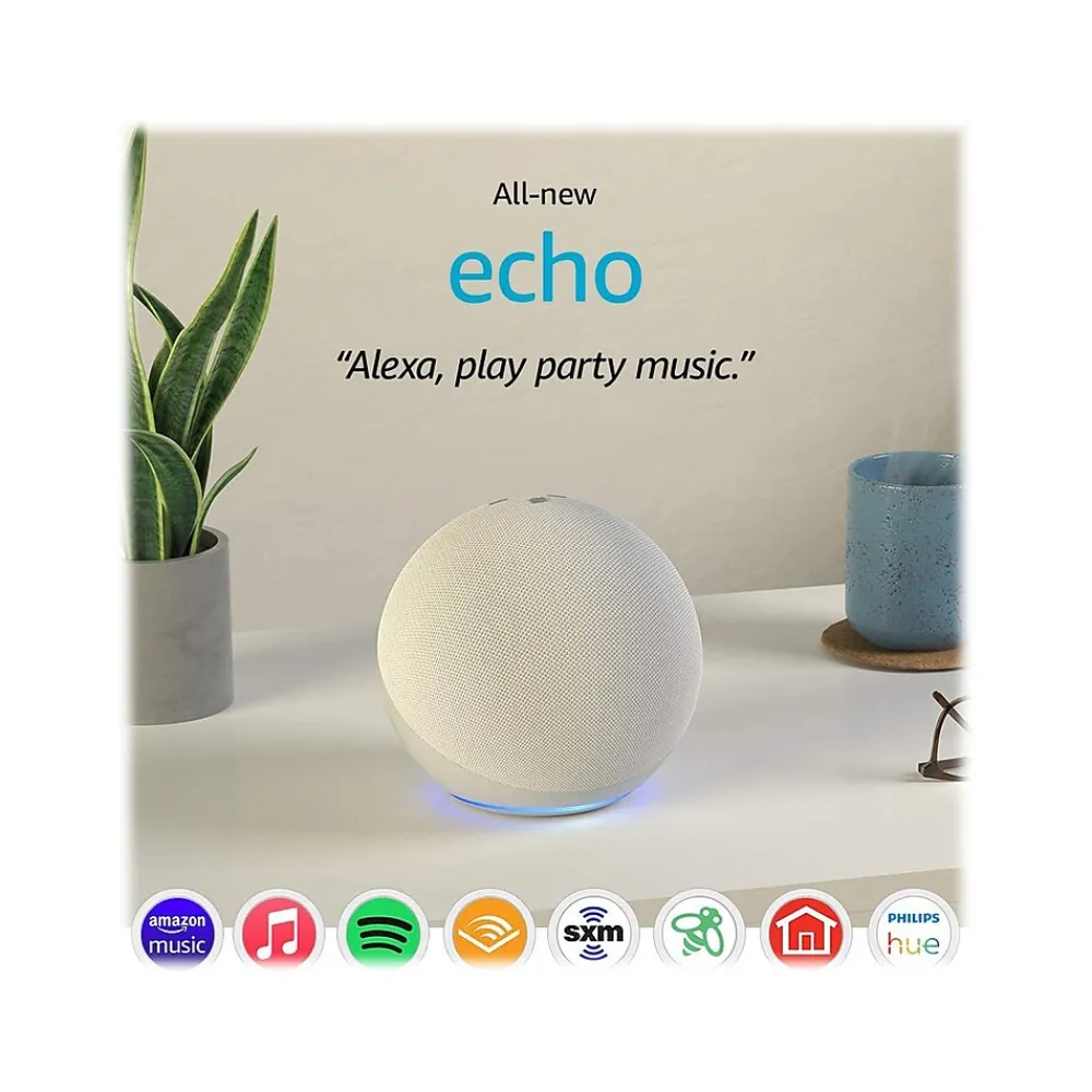 Amazon Echo (4th Gen) smart speaker delivers clear highs, dynamic mids, and deep bass for rich, detailed sound that automatically adapts to any room. Stream songs from Amazon Music, Apple Music, Spotify, SiriusXM, and more. Plus listen to radio stations, podcasts, and Audible audiobooks. Ask Alexa to play music, answer questions, play the news, check the weather, set alarms, control compatible smart home devices, and more. With the built-in hub, easily set up compatible Zigbee devices or Ring Smart Lighting products (coming soon) to voice control lights, locks, and sensors. With multi-room music, play synchronized music across Echo devices in different rooms. Or pair your Echo with Fire TV to feel scenes come to life with home theater audio. Call almost anyone hands-free. Instantly drop in on other rooms or announce to the whole house that dinner’s ready. Built with multiple layers of privacy protections and controls, including a microphone off button that electronically disconnects the microphones.