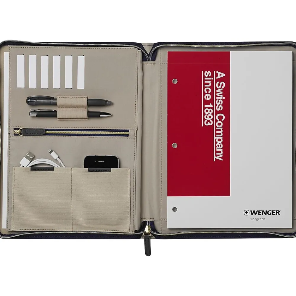 Be prepared when meeting with potential clients, employees, or other business associates with this women’s padfolio. The zippered closure helps ensure contents stay private and secure, while the sturdy material offers added durability and strength. This Wenger Amelie women’s zippered padfolio has a convenient lining, so you can easily store your tablet and includes a front pocket, providing extra storage options for loose papers and notes.