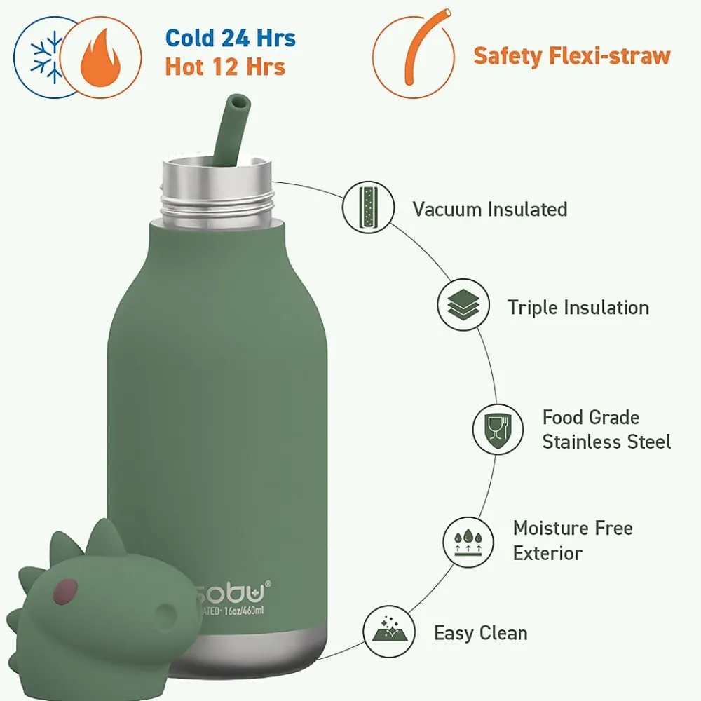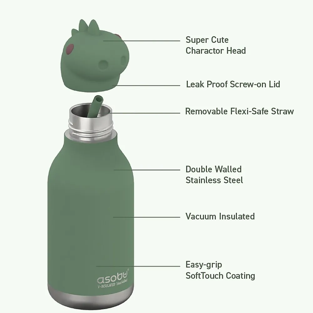 On the hunt for a fun and functional water bottle for your little one? The ASOBU Dinosaur Bestie Bottle is an adorable stainless steel kids water bottle with a soft head on the lid! This 16-oz. bottle is easy for those little hands to hold and is 100% spillproof, making it ideal for adventures! With the included flexible reusable straw drinking will be fun and games!