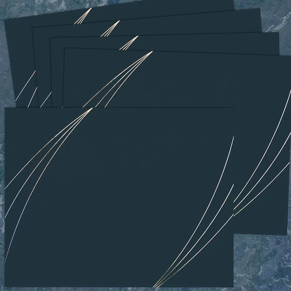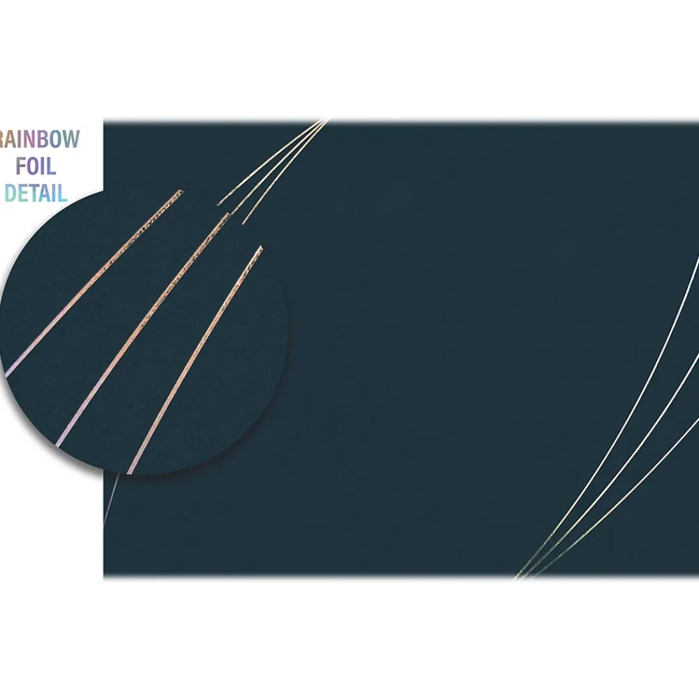 - Made of heavyweight 130 lb. midnight blue paper with a velvety soft finish and rainbow foil accents