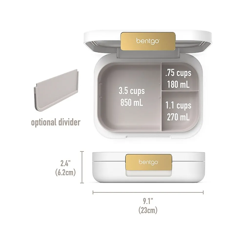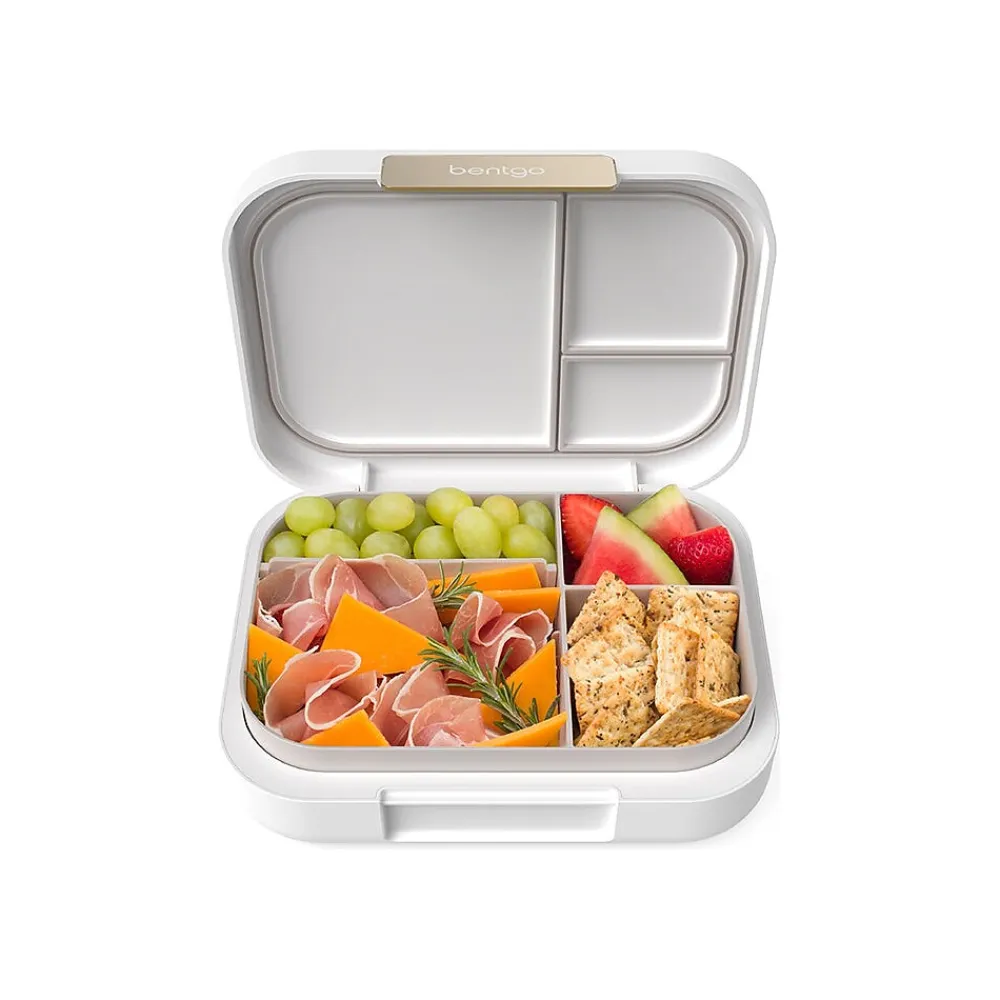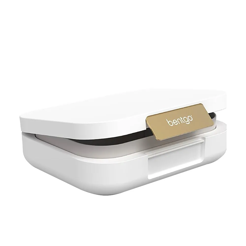 The Bentgo Modern lunch box gives healthy eating on the go a stylish makeover. Designed to turn heads in the office break room, the versatile three- or four-compartment bento-style lunch box features a contoured outer shell with a sleek matte finish, held tightly closed with a shiny metallic clip. Leak-resistant, the removable tray is microwave- and dishwasher-friendly, making eating and cleanup a breeze. Eating healthy has never looked so good.