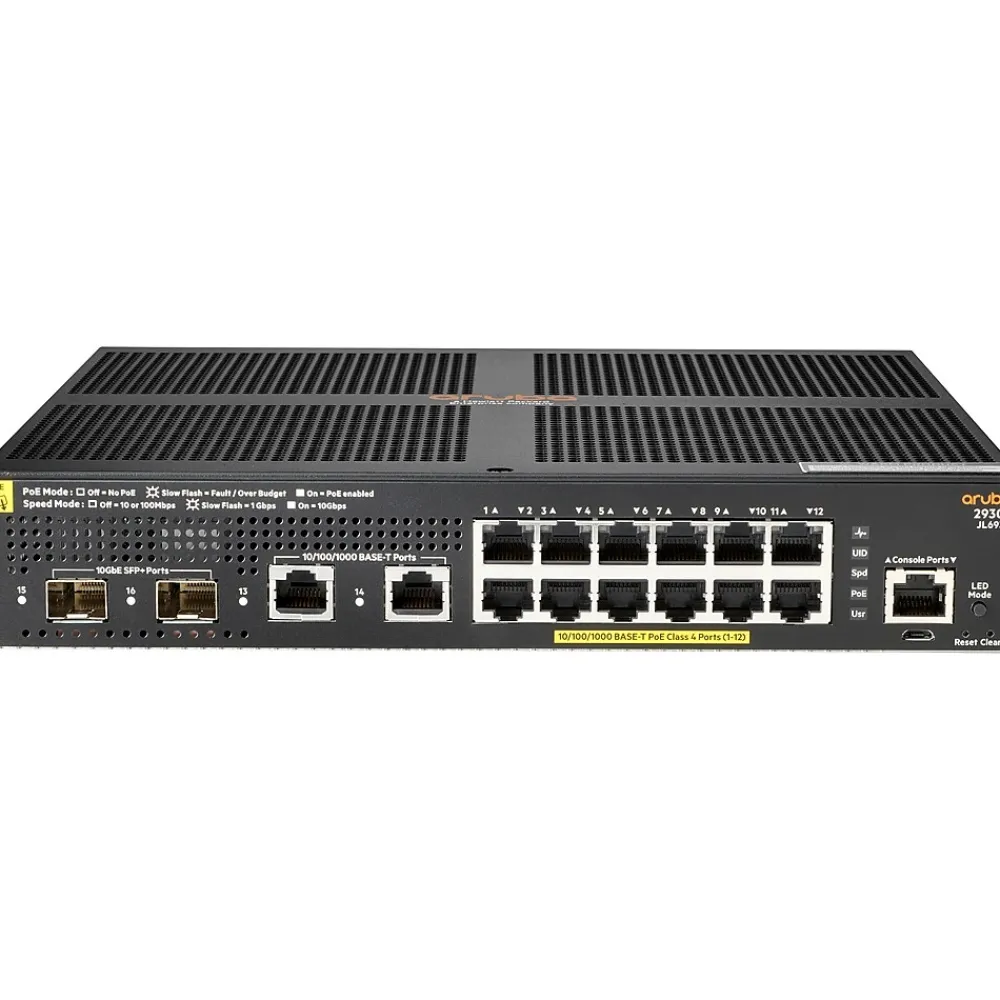 The Aruba 2930F switch series is designed for customers creating smart digital workplaces that are optimized for mobile users with an integrated wired and wireless approach. This convenient Layer 3 network switch includes built-in uplinks and PoE power and is simple to deploy and manage with advanced security and network management tools like Aruba ClearPass policy manager, Aruba AirWave, and cloud-based Aruba Central. This switch provides a convenient and cost-effective access switch solution that can be quickly set up with zero touch provisioning. The robust Layer 3 feature set includes a limited lifetime warranty.