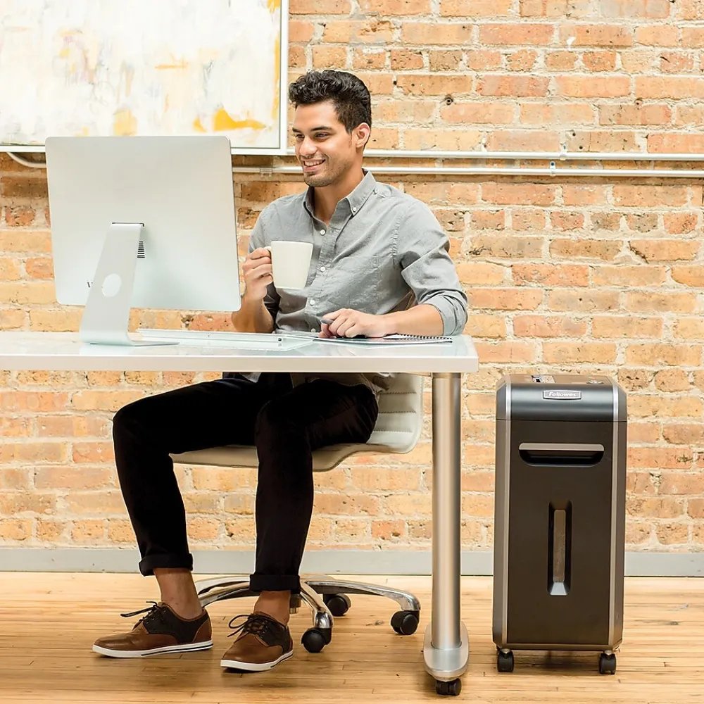 Handle high-volume document disposal tasks and maximize informational security with this Powershred 14-sheet micro-cut shredder. Ideal for preserving confidentiality, this machine boasts a 14-sheet capacity and uses micro-cut shredders to turn documents into approximately 2,154 minuscule particles per page for maximum data security. This Fellowes Powershred micro-cut shredder processes up to 11 feet of documents per minute and offers up to 20 minutes of continuous shredding at a time, perfect for handling high-volume disposal tasks in one sitting.