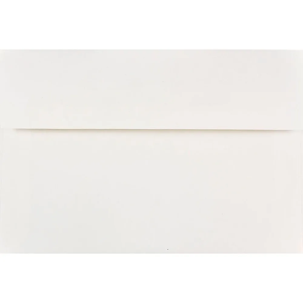 Sleek, clean, and versatile, JAM PaperĀ® A8 White Booklet Envelopes are an excellent option for sending your next mailings. Use to send wedding invitations, announcements, direct mail, business correspondence, thank you cards, save the dates, and more knowing your mail will be immediately noticed and opened upon receiving! Whether you use at the home or office, these envelopes are appropriate for all occasions and settings. However you use, expect high quality performance and efficacy. This pack contains 50 white booklet envelopes made from 24 lb. paper. Each envelope has a booklet opening, straight flap, gum closure, and smooth finish.